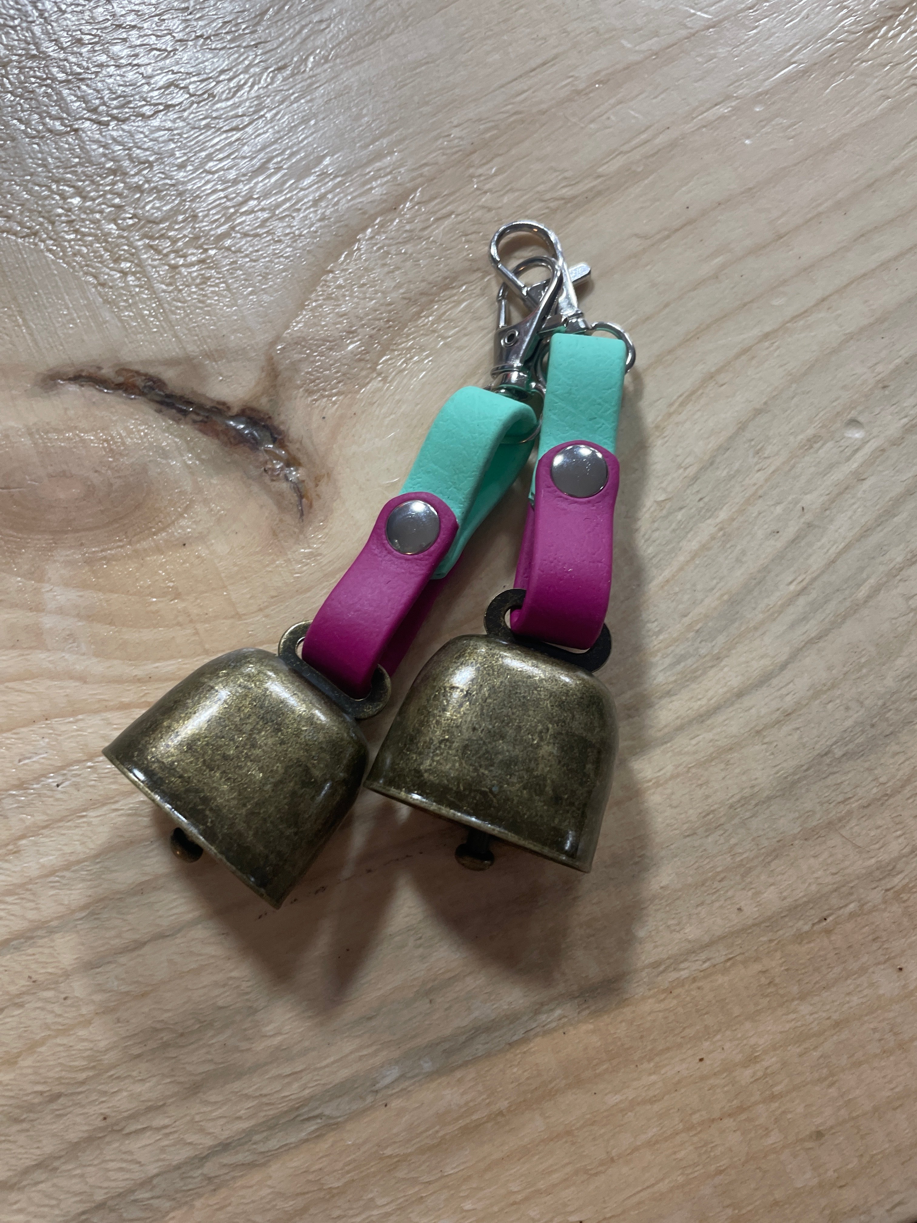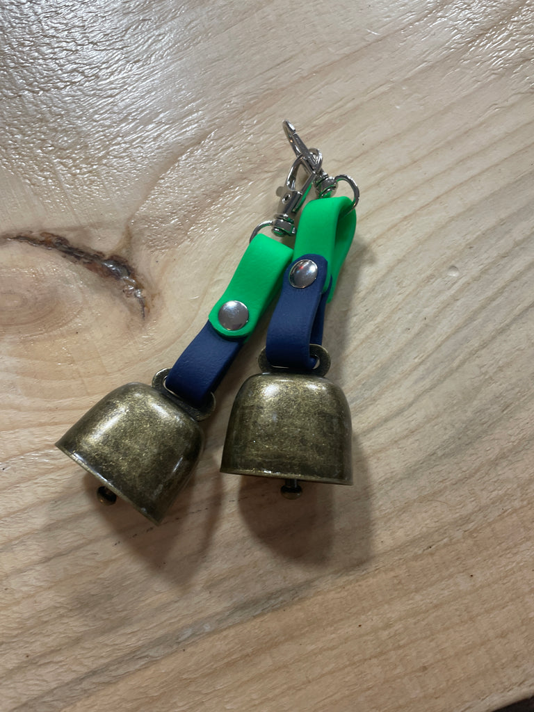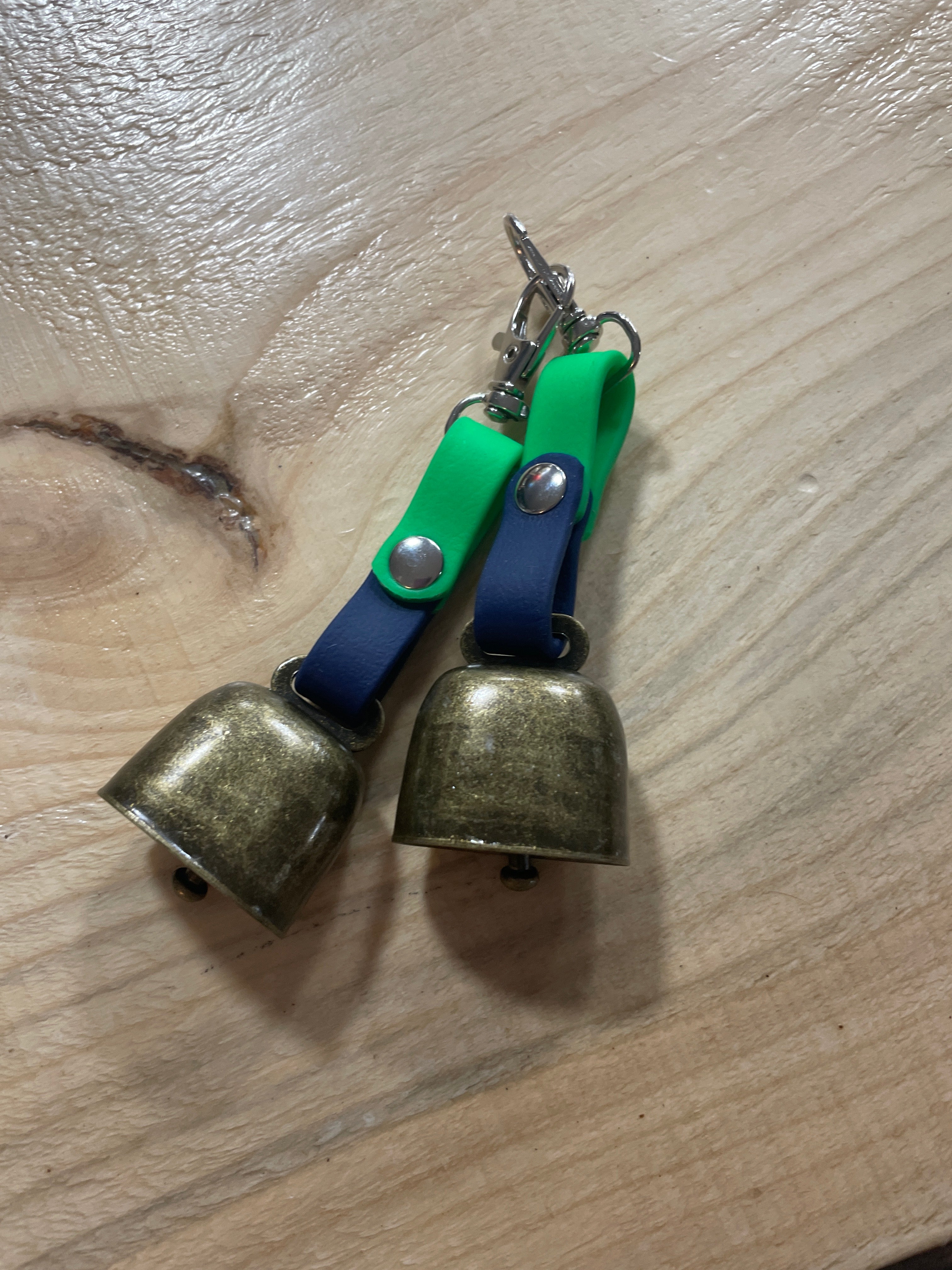Handmade riding bells. Made locally in Edson Alberta with Biothane. Clip onto the saddle. Set of 2 Bells.