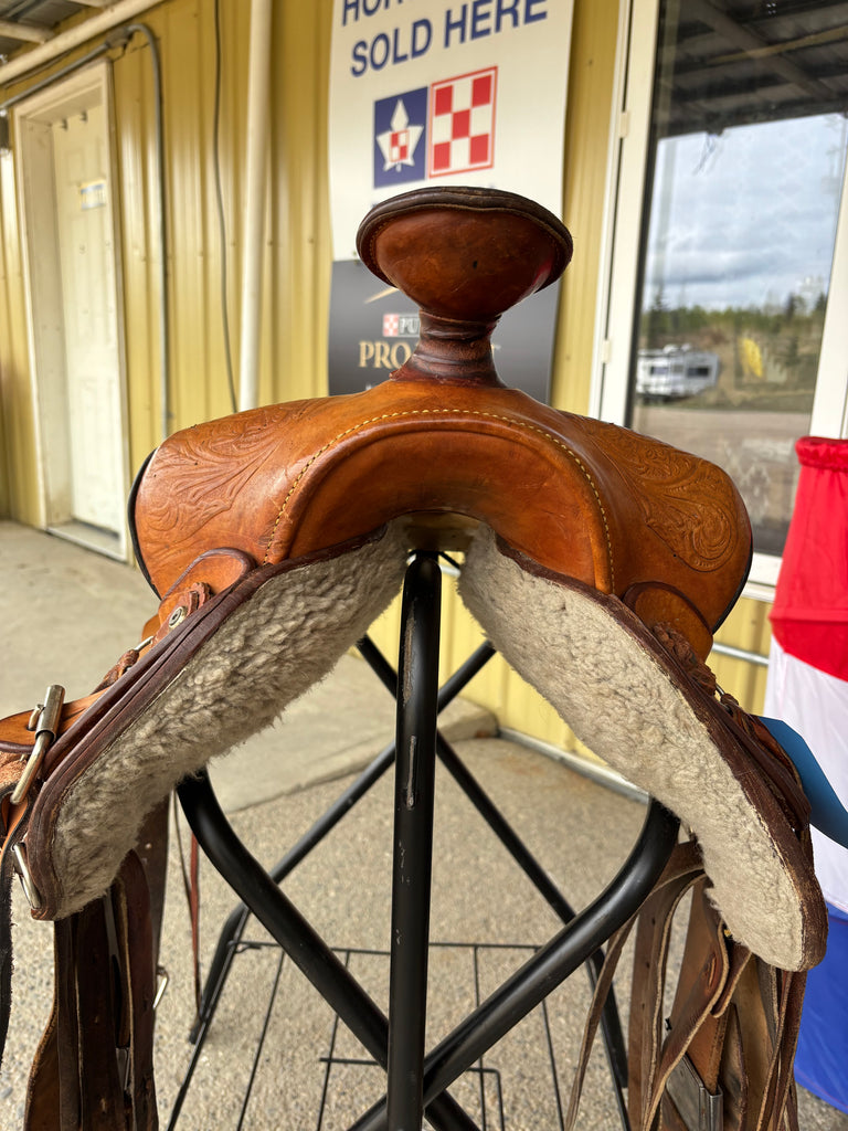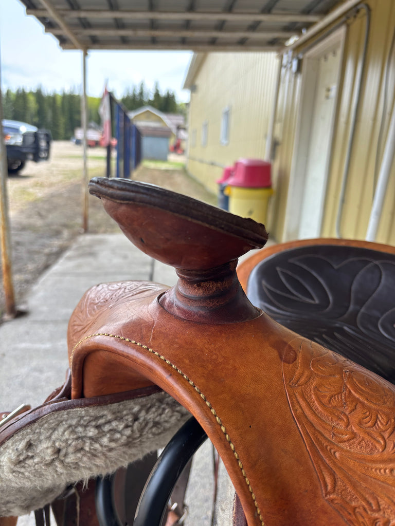 Excellent condition, has some minor marks on leather throughout but in amazing shape. Has some Minor rope burn on horn. Tree is solid!