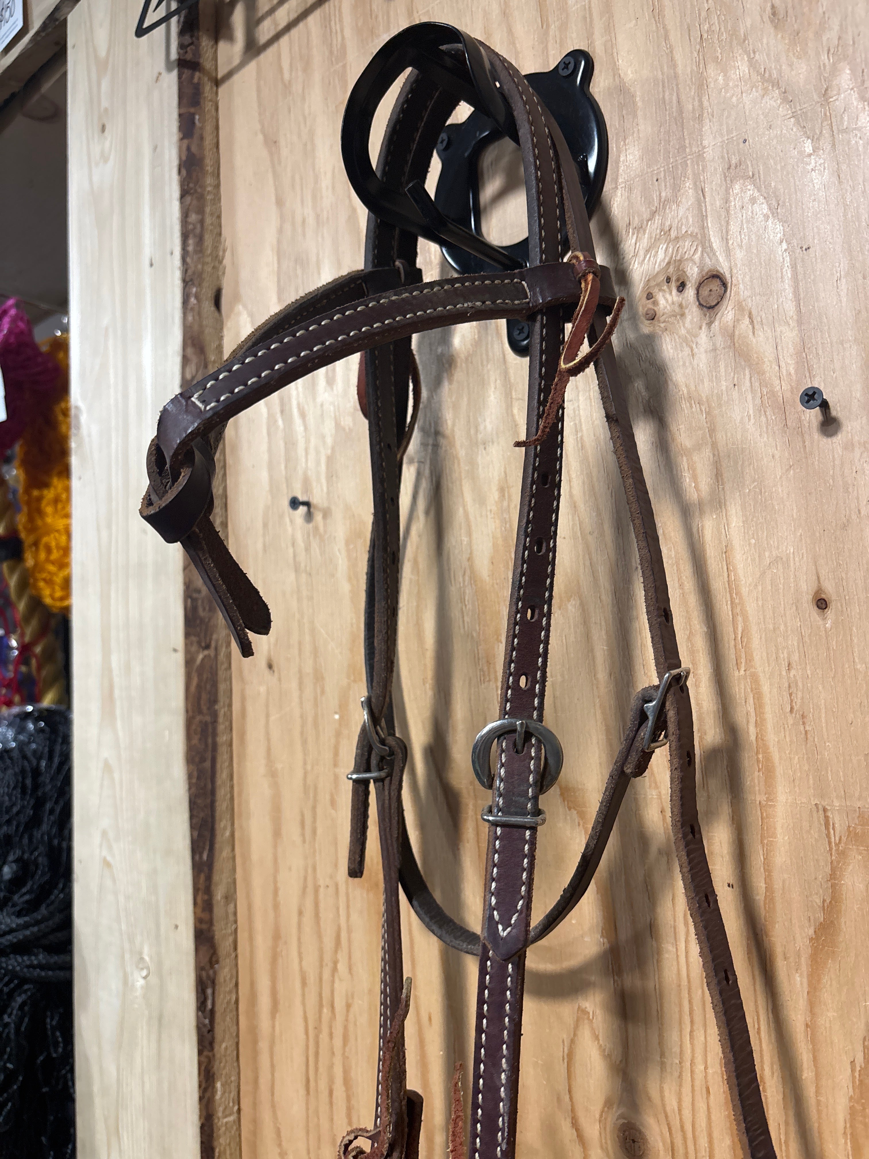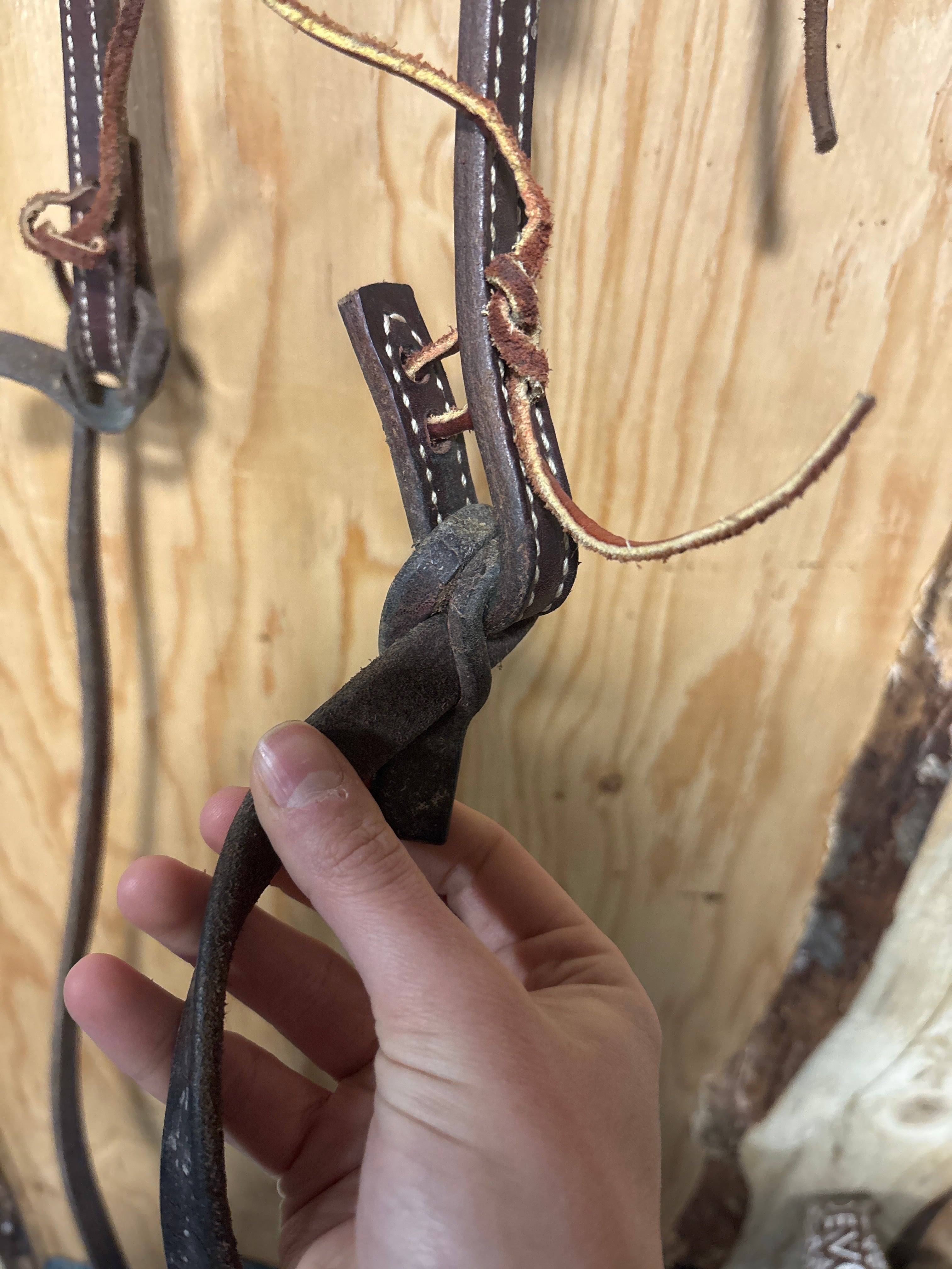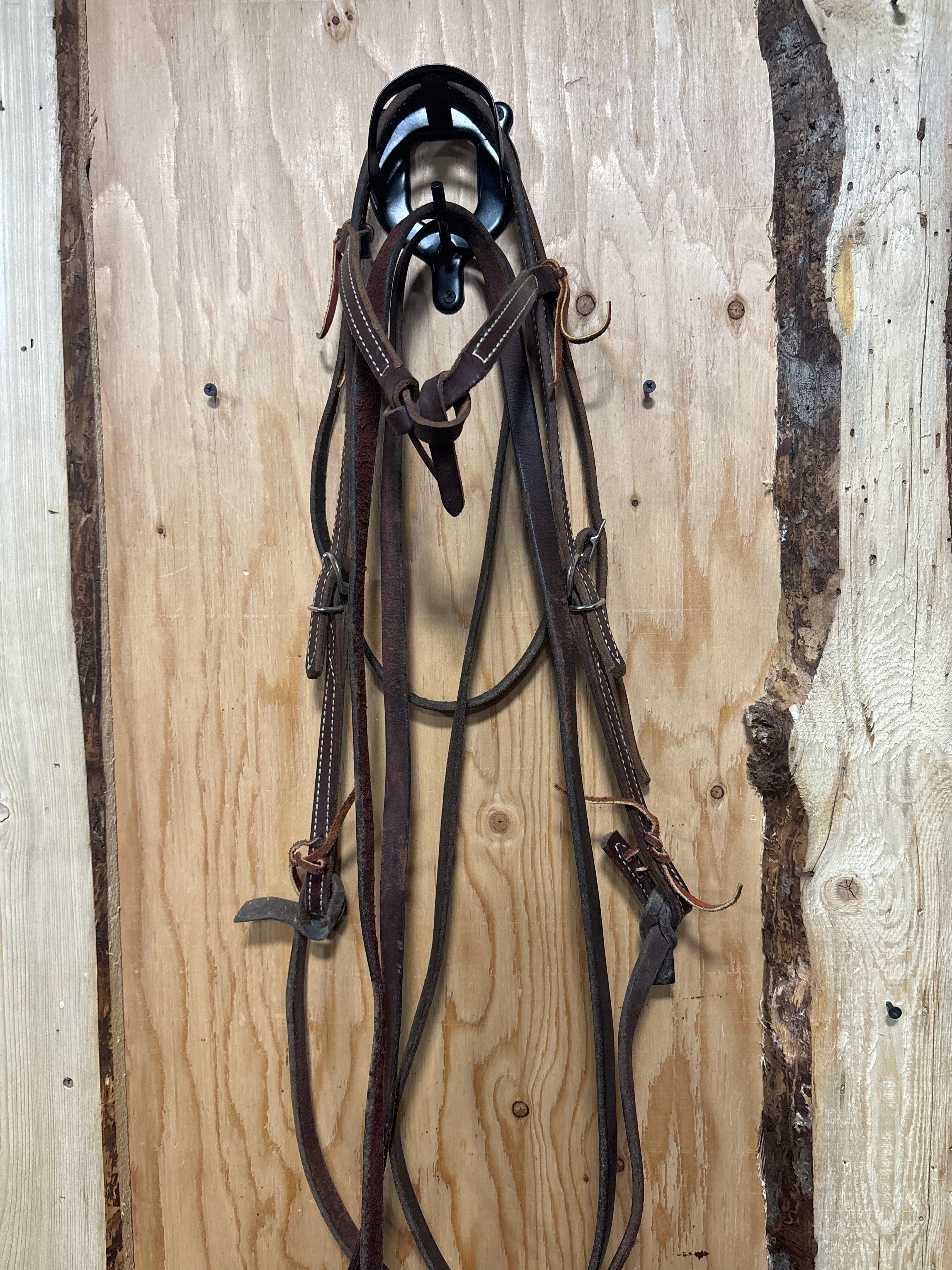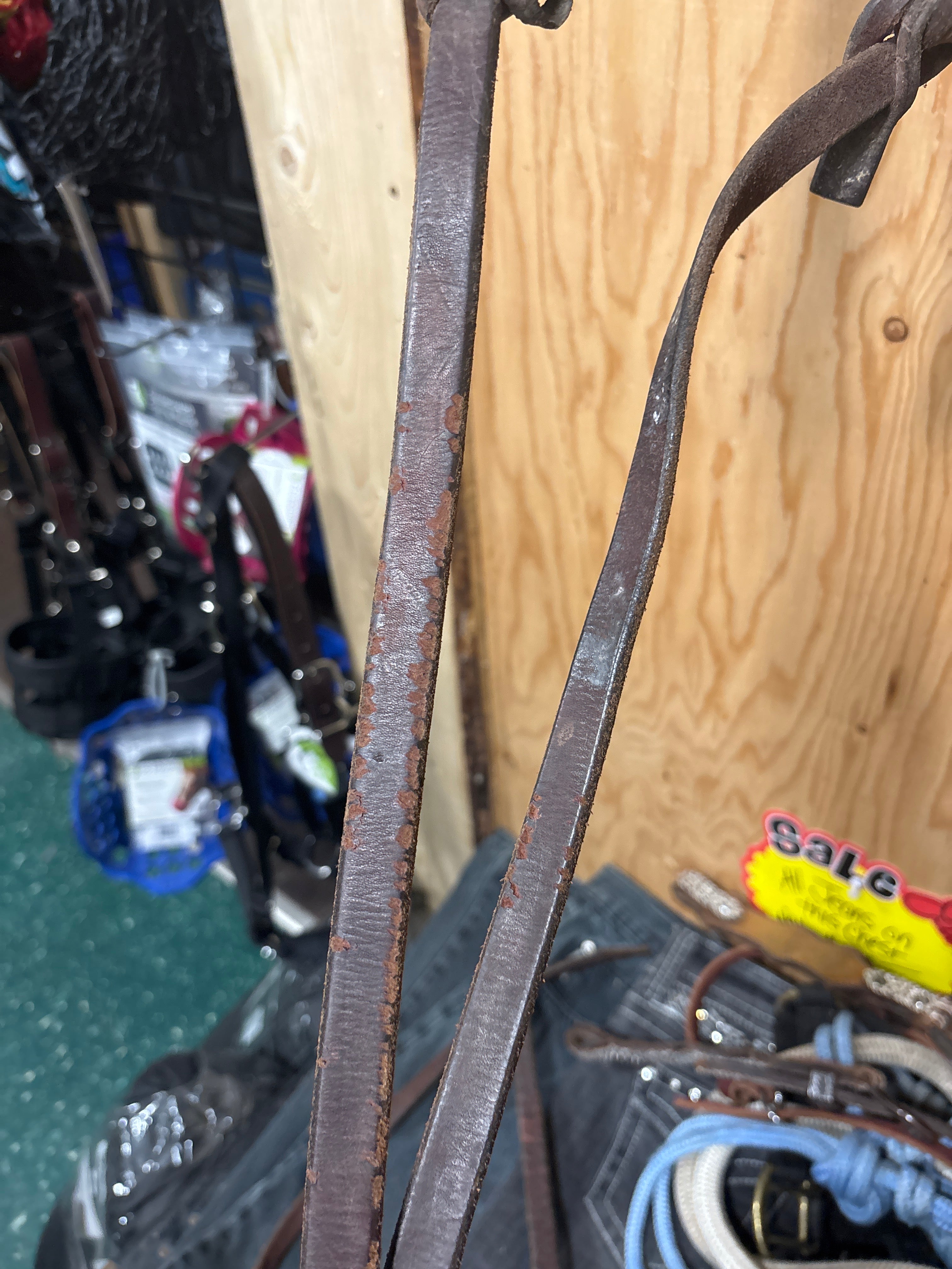 USED- Western Leather Futurity Knot Headstall w/ Leather Split Reins- Full