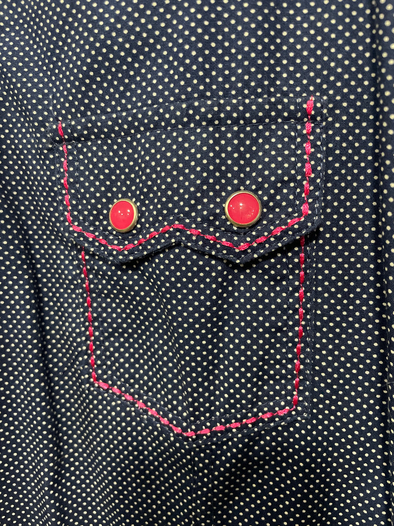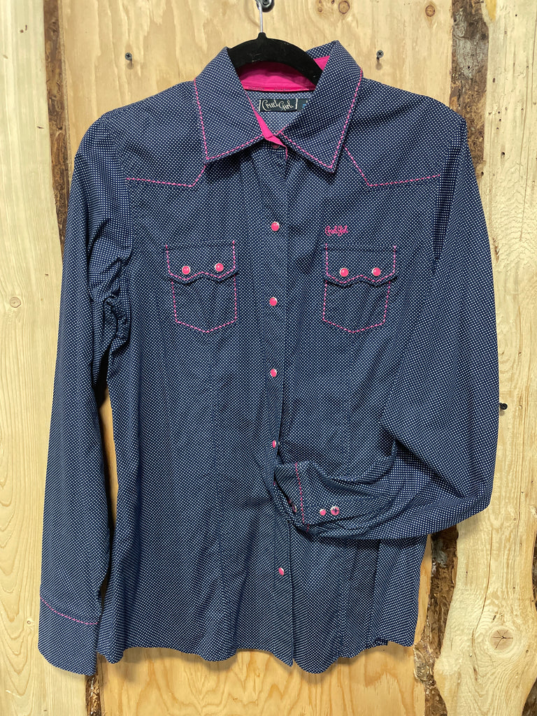 USED- Cruel Girl Western Shirt- Navy Polka Dots w/ Pink- Large