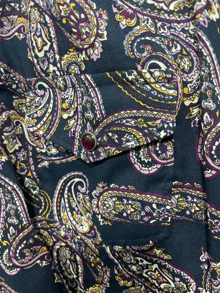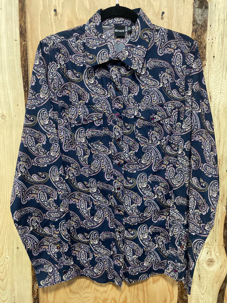 USED- Cruel Ladies Western Shirt- Navy/Purple Paisley- Large