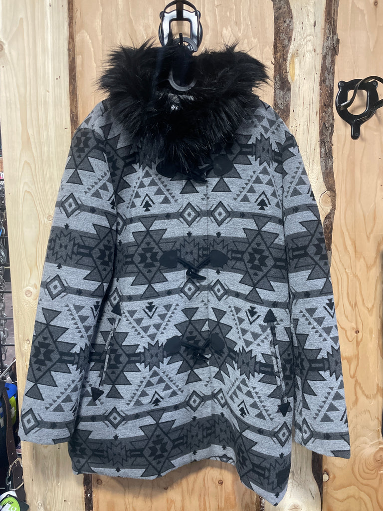 USED-Hooey Aztec Jacket with Fur Hood-Size XL