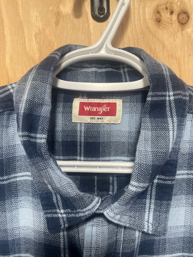 USED-Men's Wrangler Long Sleeve Blue Plaid Flannel-Size M