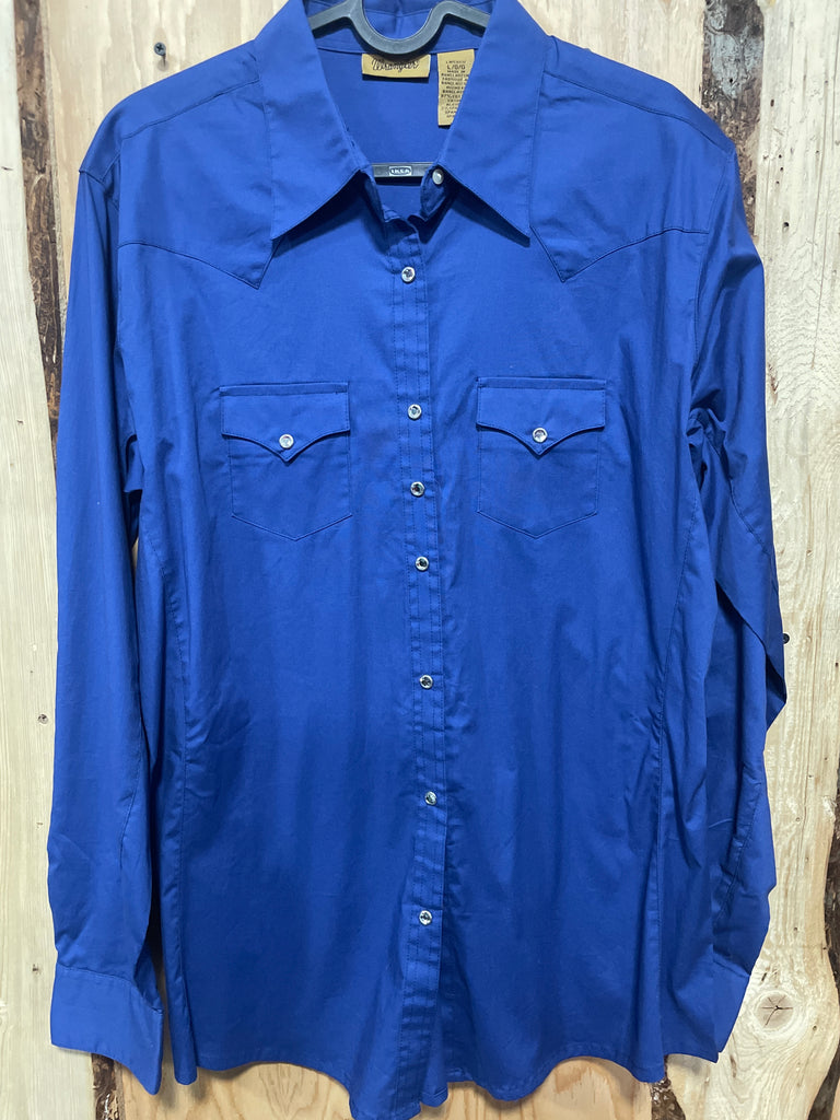 USED-Wrangler Ladies Western Shirt-Blue Size L