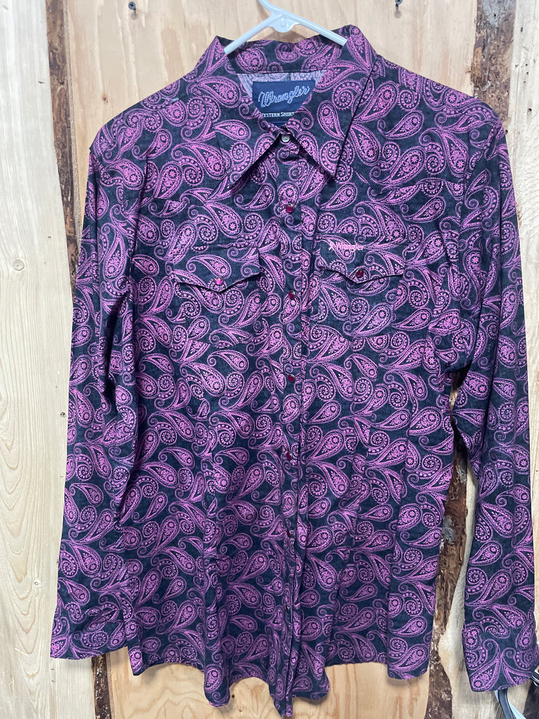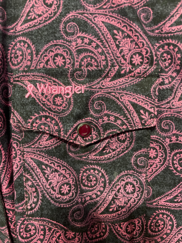 USED-Wrangler Ladies Western Shirt-Pink Paisley Breast Cancer Logo-Size XL