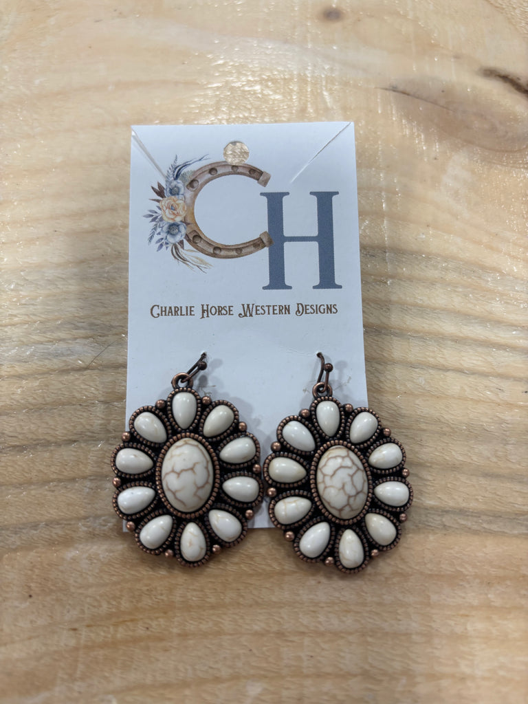 Faux white buffalo turquoise Necklace, Earrings and Ring Set