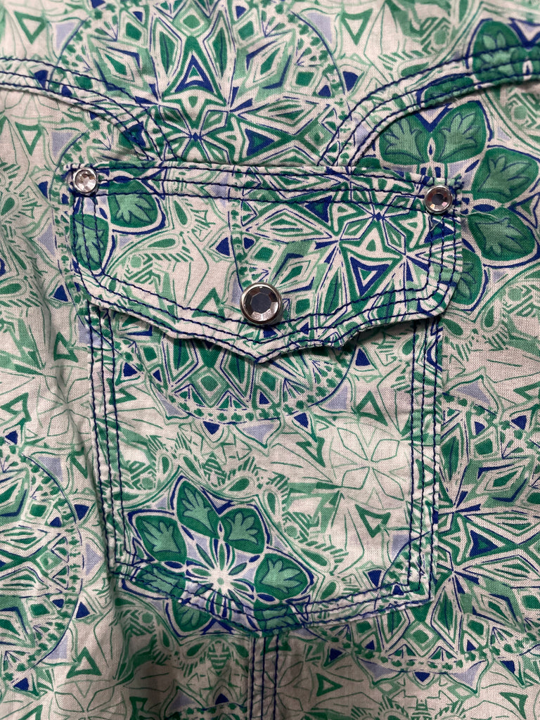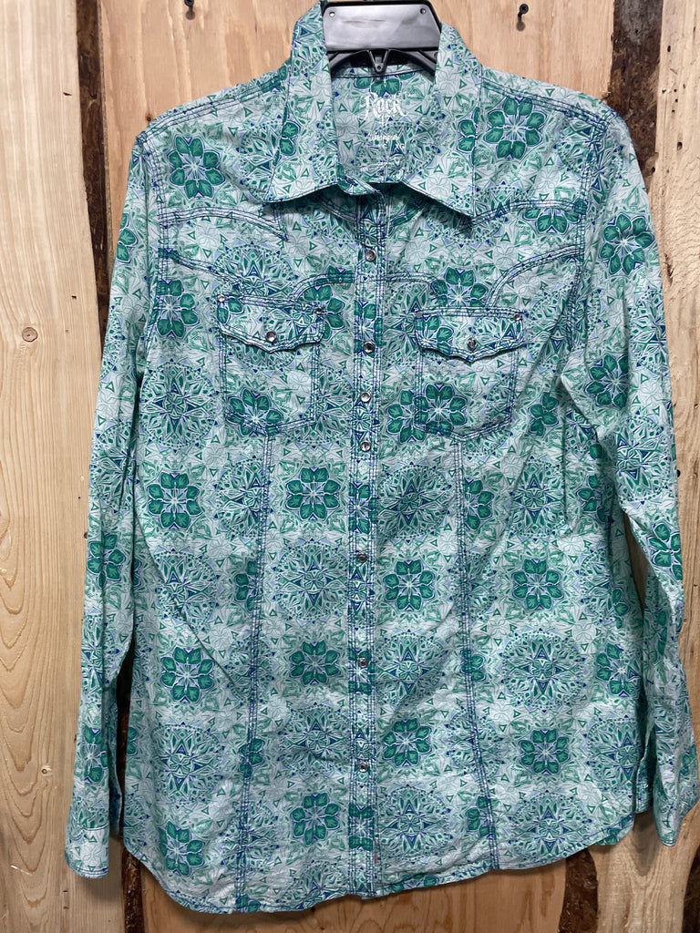 Rock 47 Wrangler Western Shirt-Green and Blue-Size XL