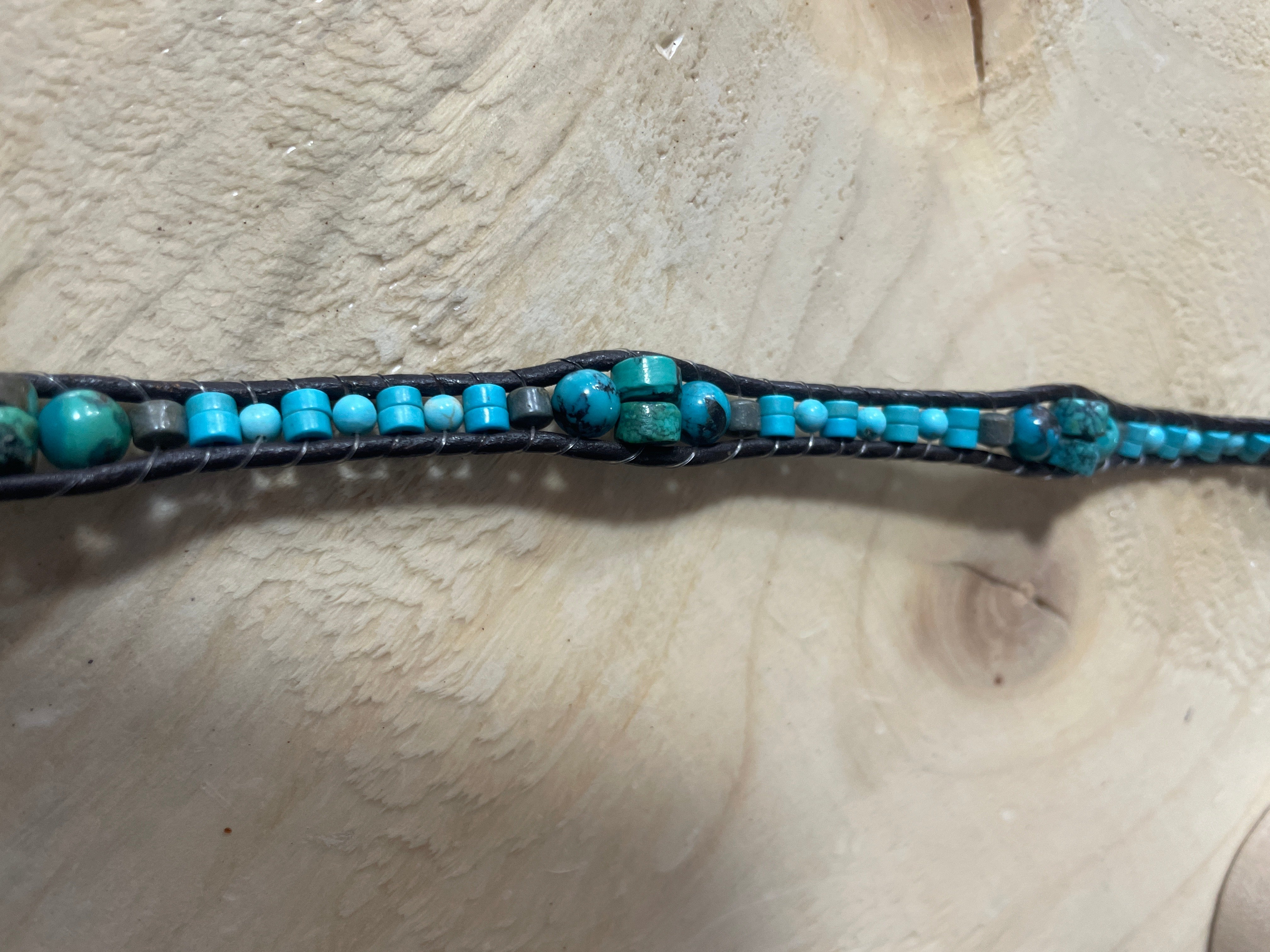 Custom made Turquoise Bracelet wrap with Leather, fits a small wrist, made locally in Edson.