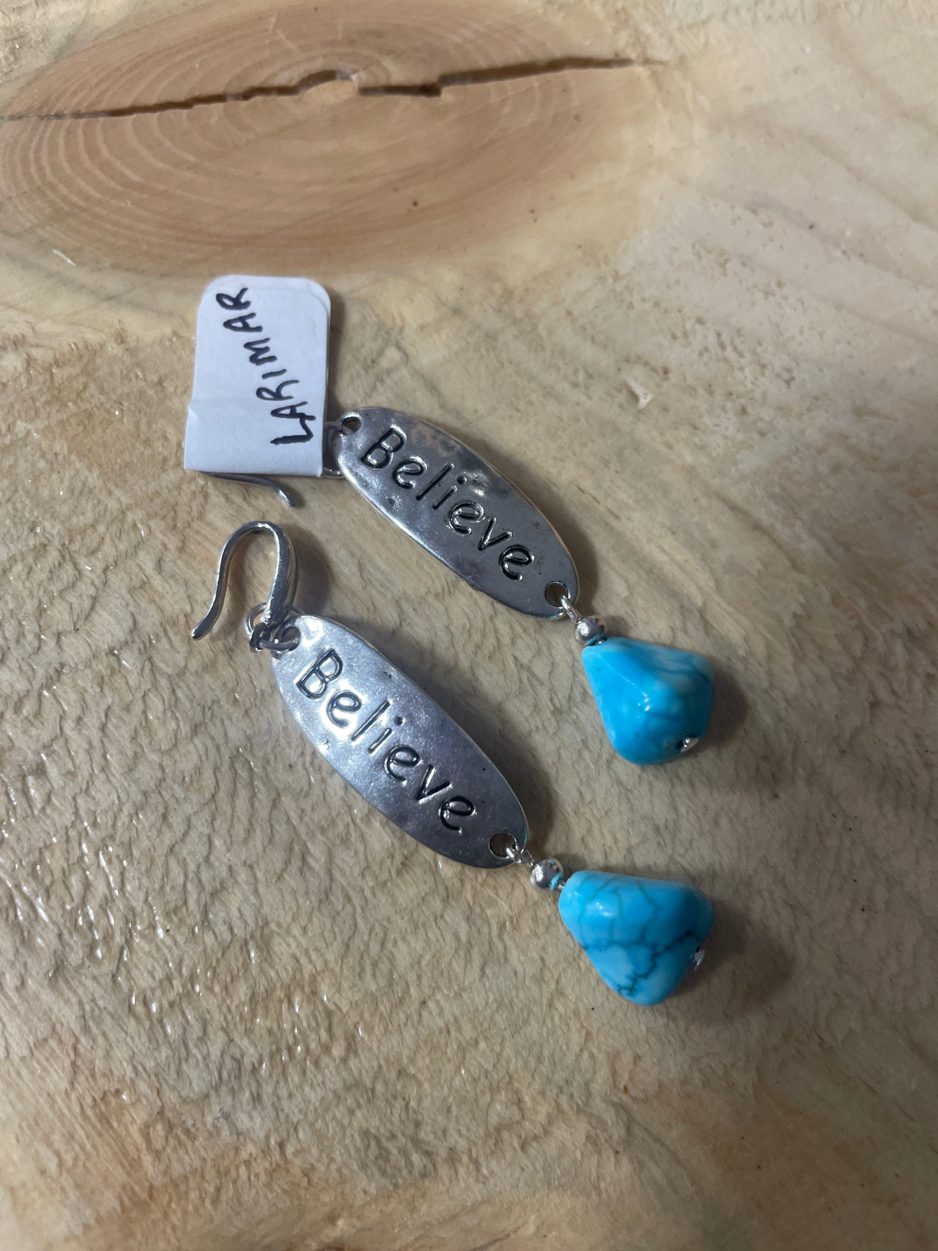 Custom made larimar earrings, made locally in Edson.