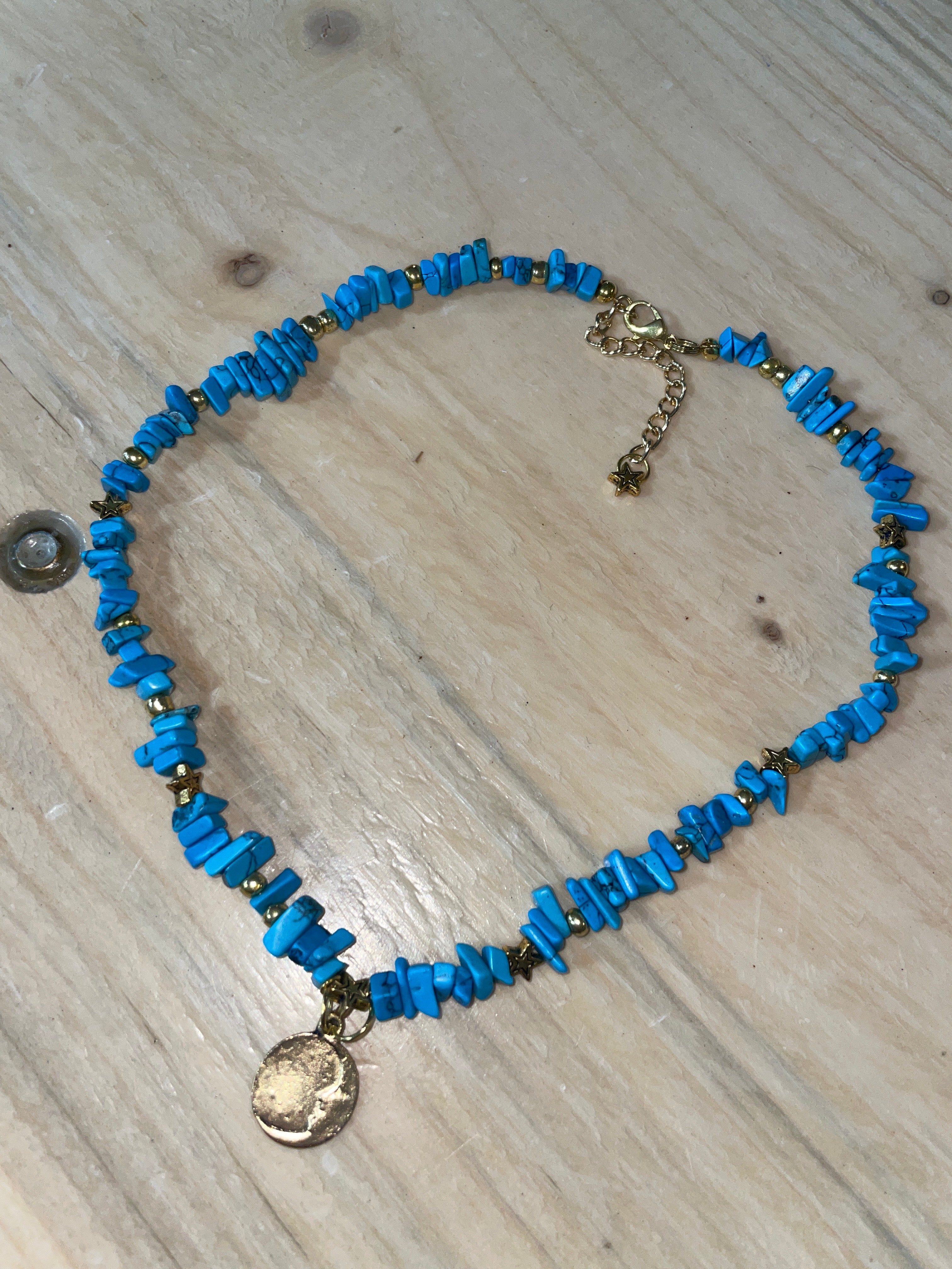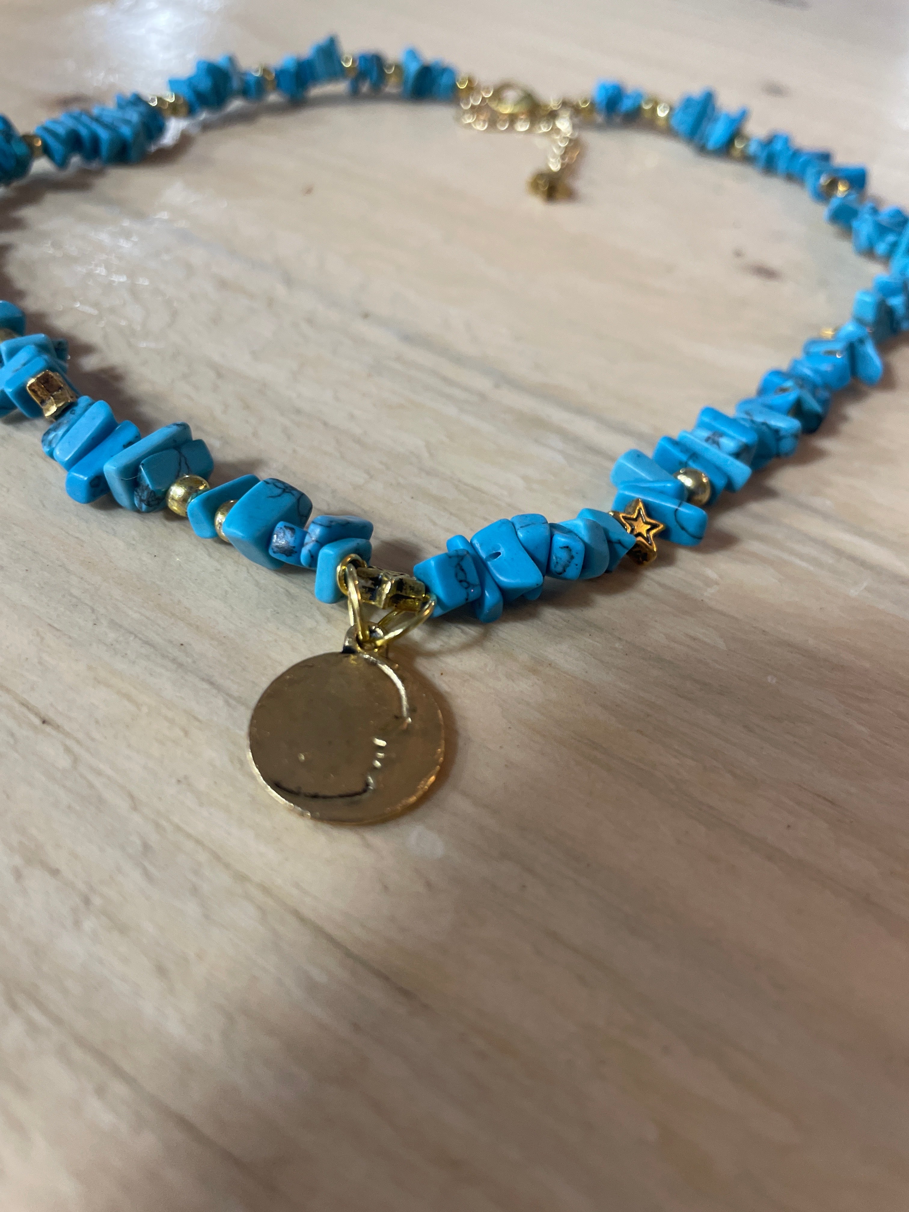 Custom made Turquoise Necklace with stars and moon pendant  made locally in Edson.