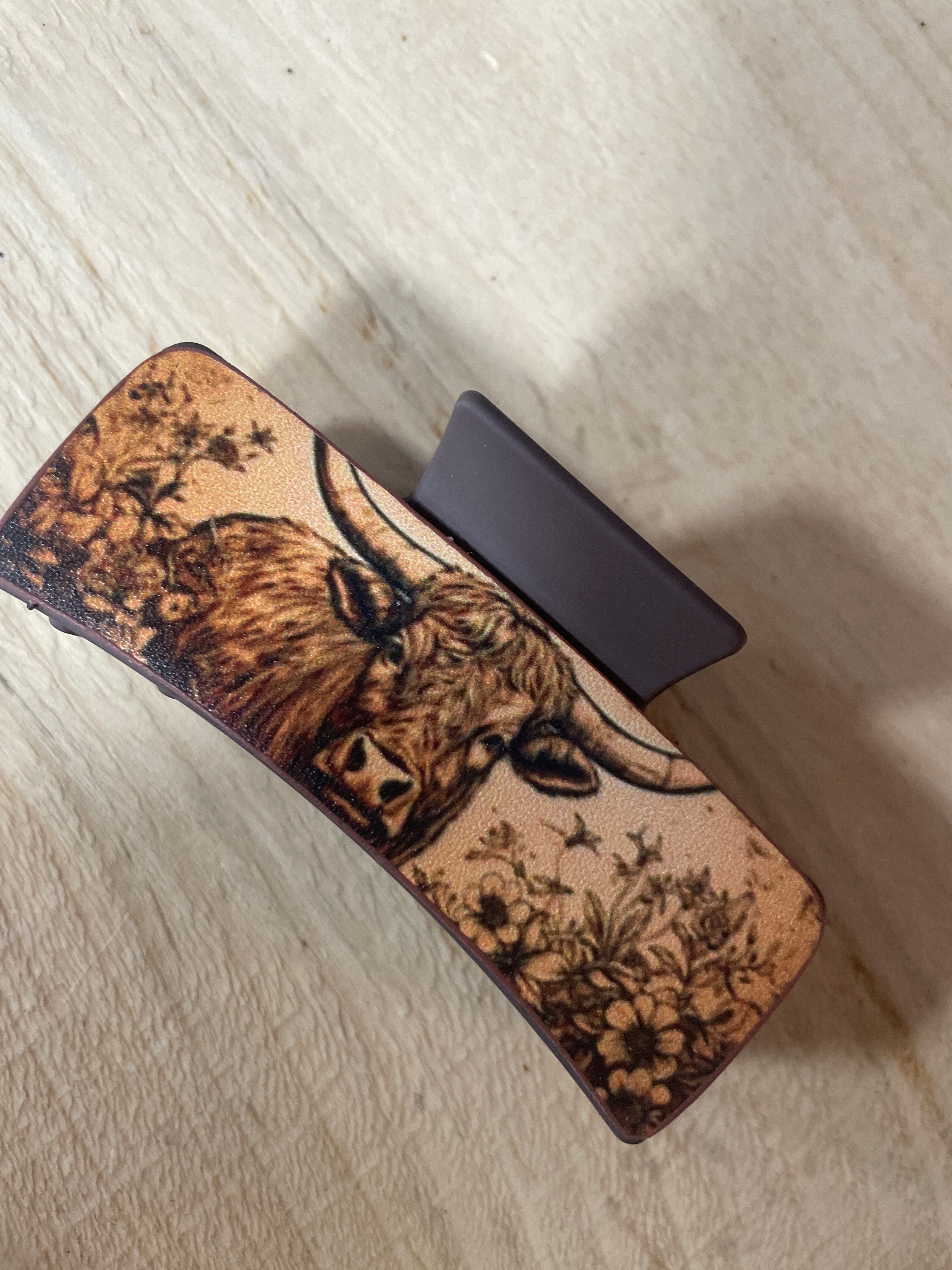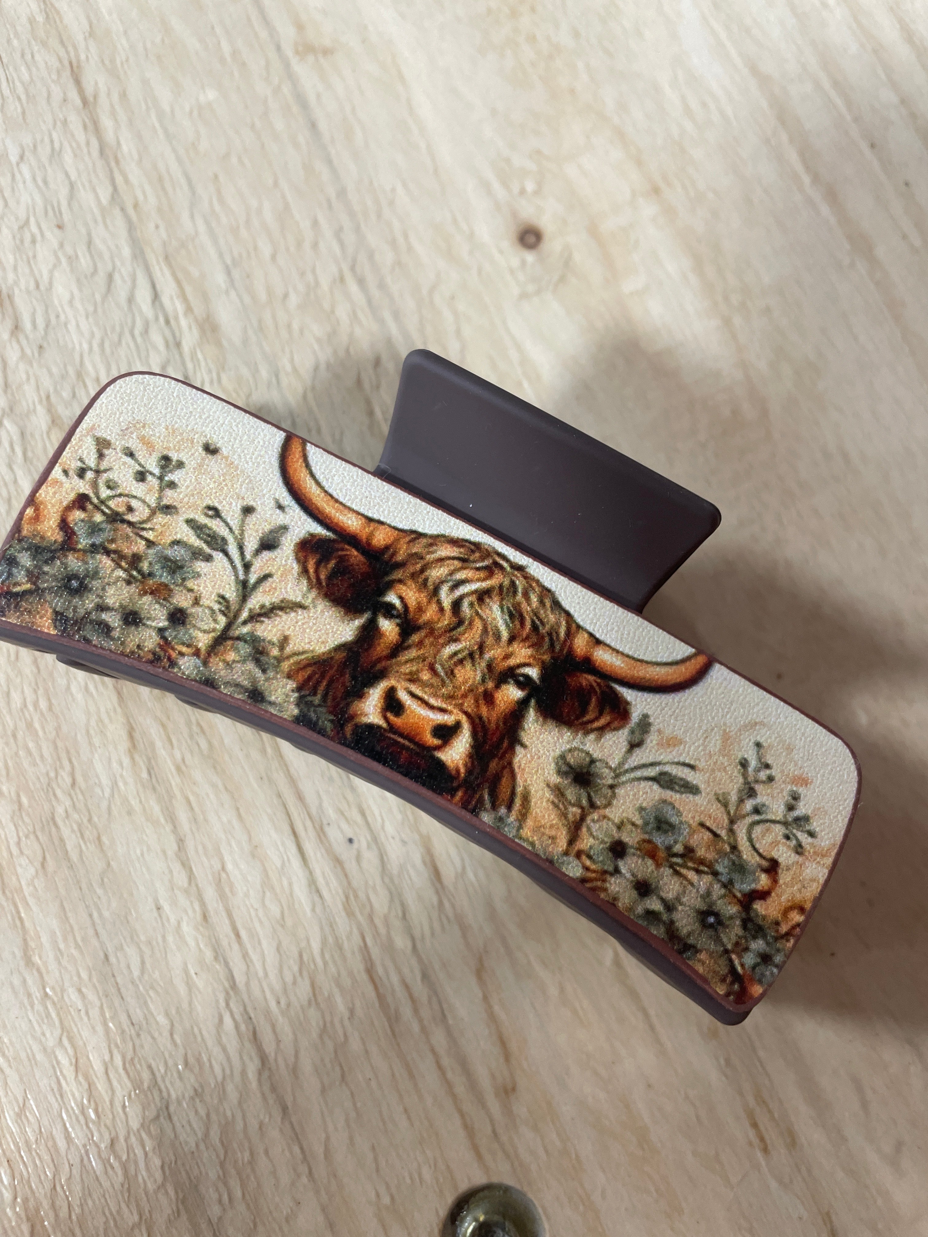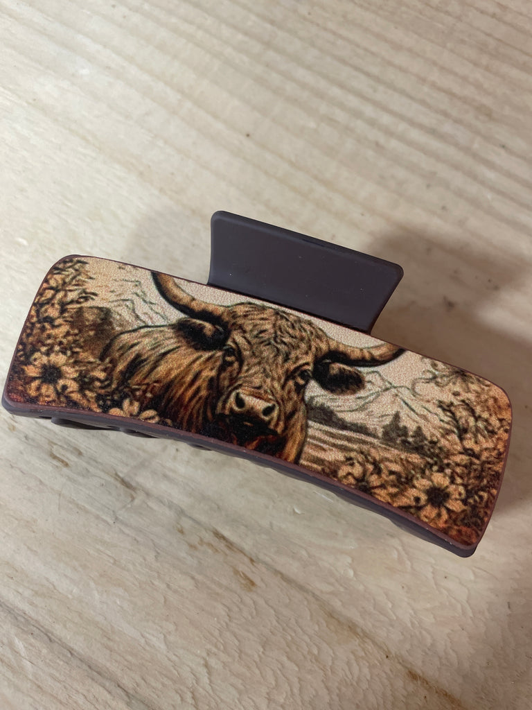 Several styles of Cow patterned claw clips.