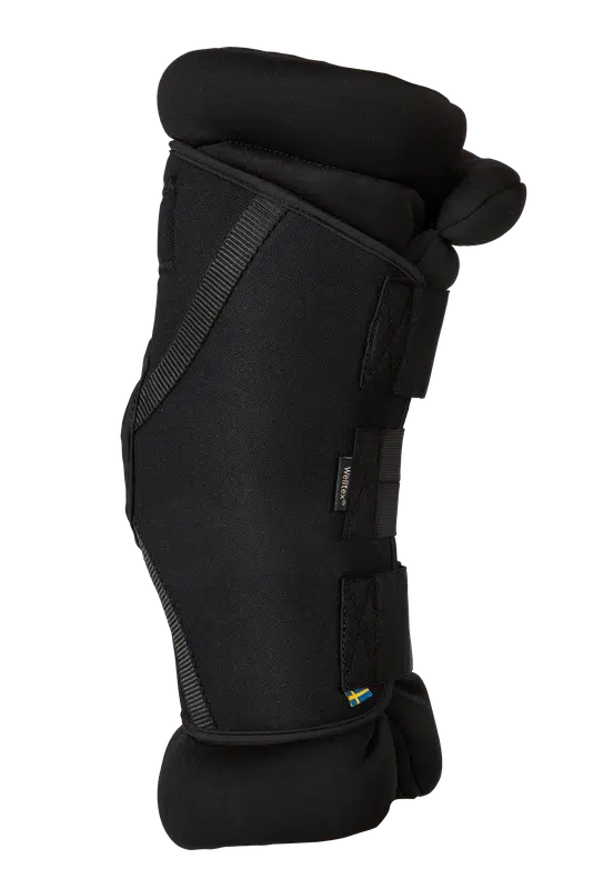 Introducing our Royal Padded Hock Boots Deluxe w/Holes, now with a stylish new design. These fan-favorite boots offer flexible, easy use and a more protective, anatomically correct fit. The thick inner pad with soft edges ensures maximum comfort, while the improved oblong opening over the hock optimizes performance and prevents slipping. The top edge features rounded edges to avoid tendon pressure, and three hook and loop straps, including a two-piece elastic middle strap, prevent joint pressure. The removable inner pad is easy to clean and features our Welltex® technology, which helps relieve swelling, stiffness, and soreness. Ideal for preventing and recovering from osteoarthritis, inflammation, and swelling, these boots are perfect for trailering and pair perfectly with our Royal Quick Wraps Deluxe.