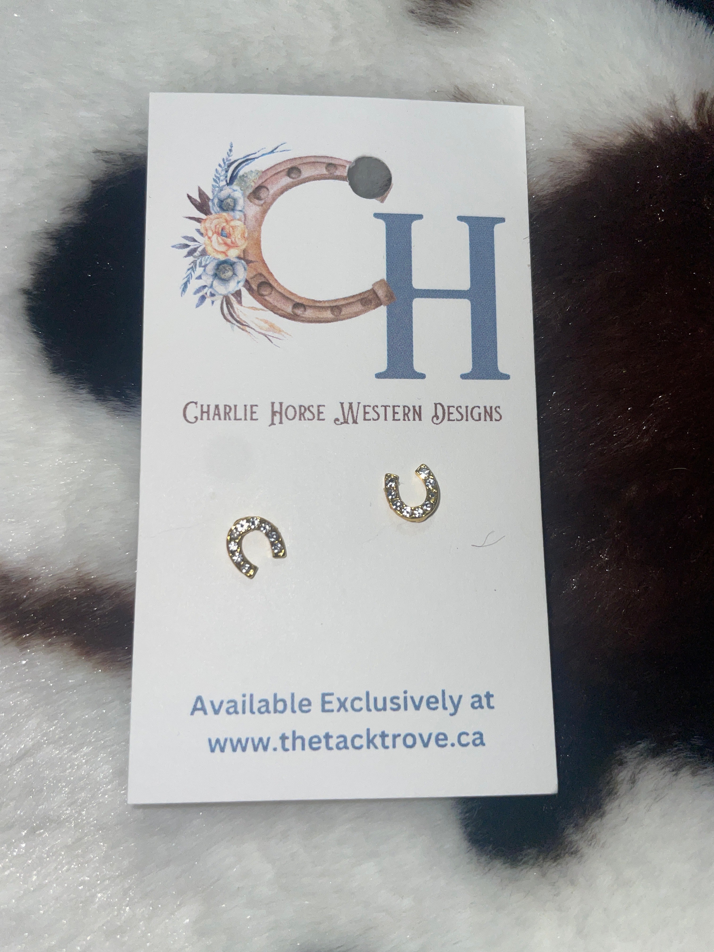 Gold Rhinestone Lucky Horseshoe Studs is backordered and will ship as soon as it is back in stock.