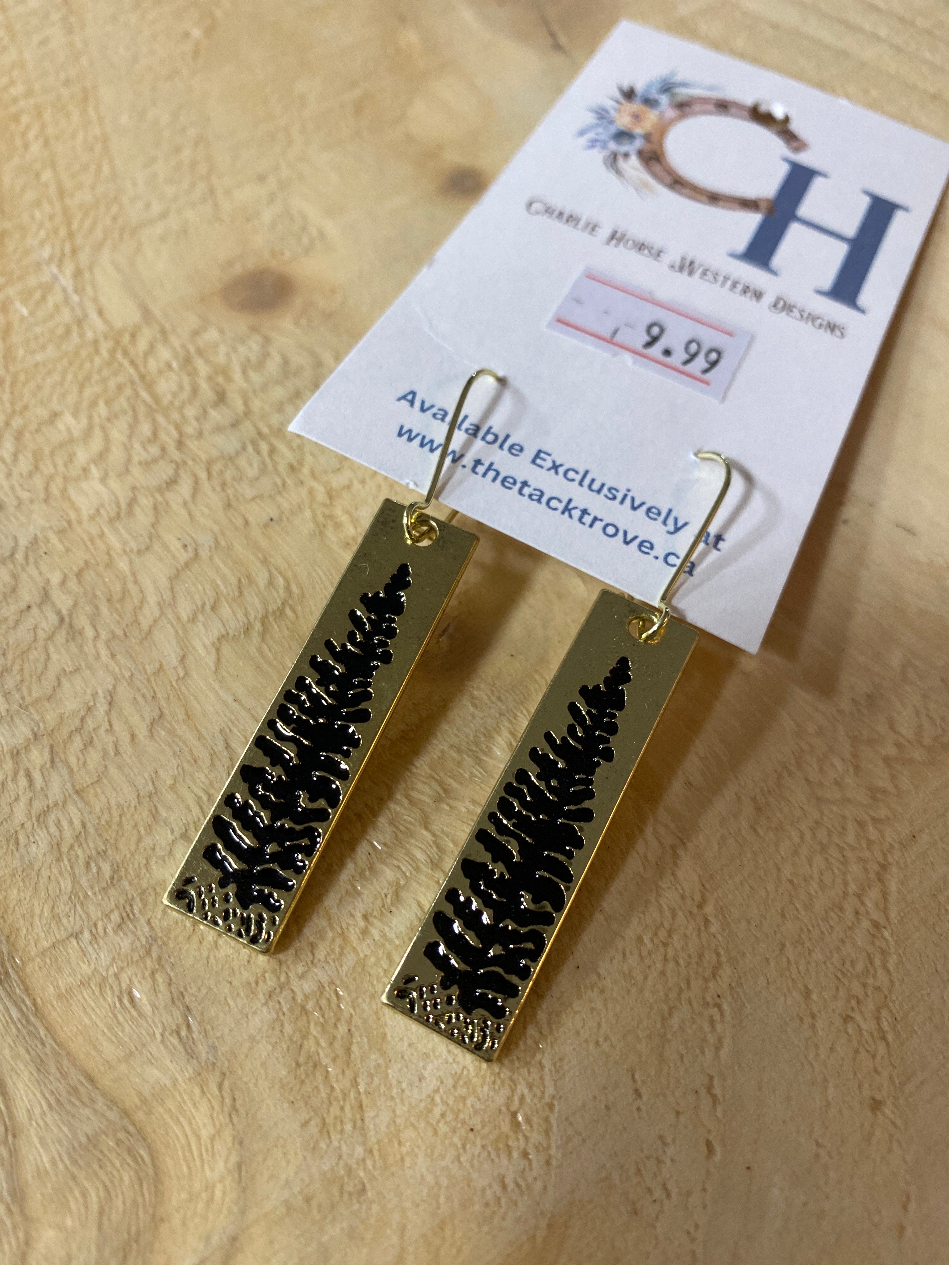 Pine Tree engraved bar earrings in Gold colour.