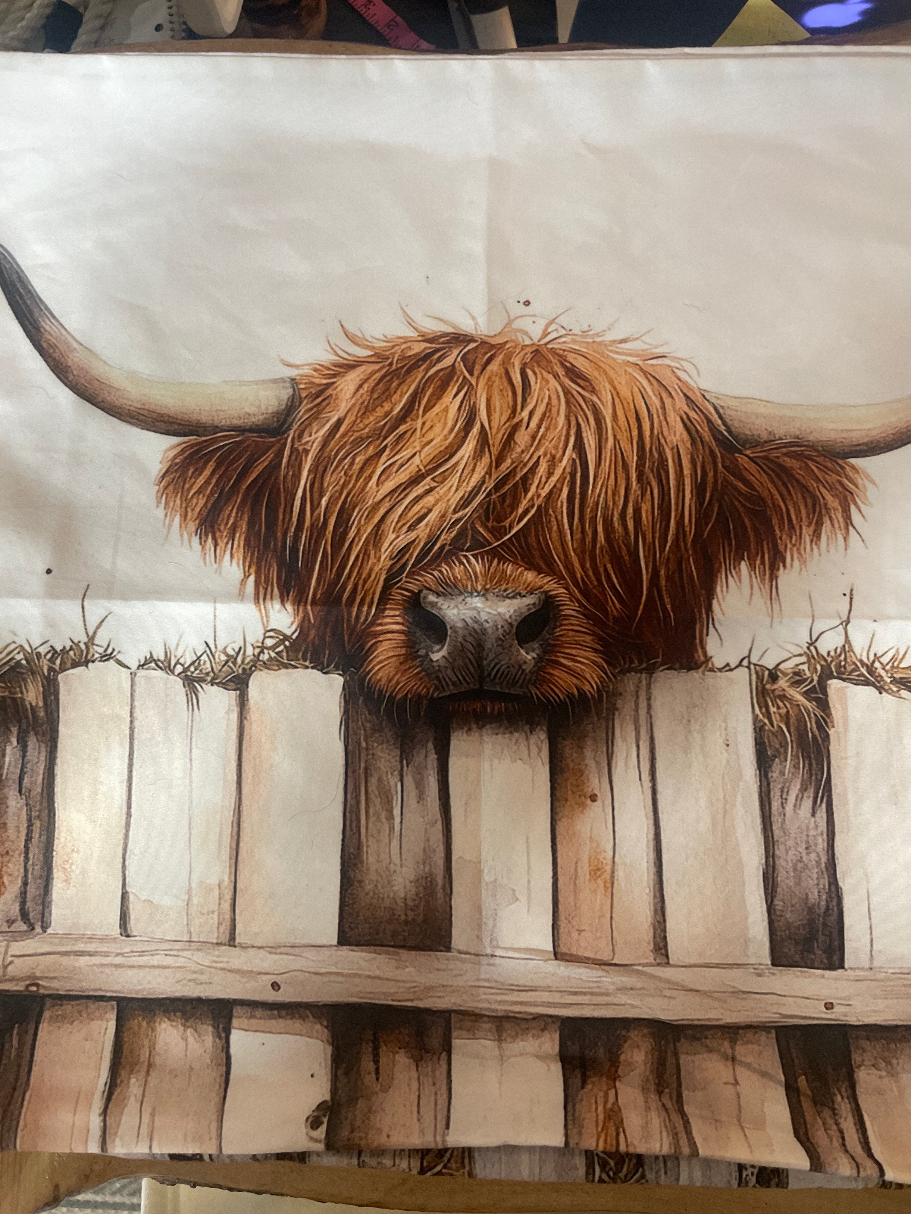Fun Cartoon highland cow themed pillow covers. Set of 2.