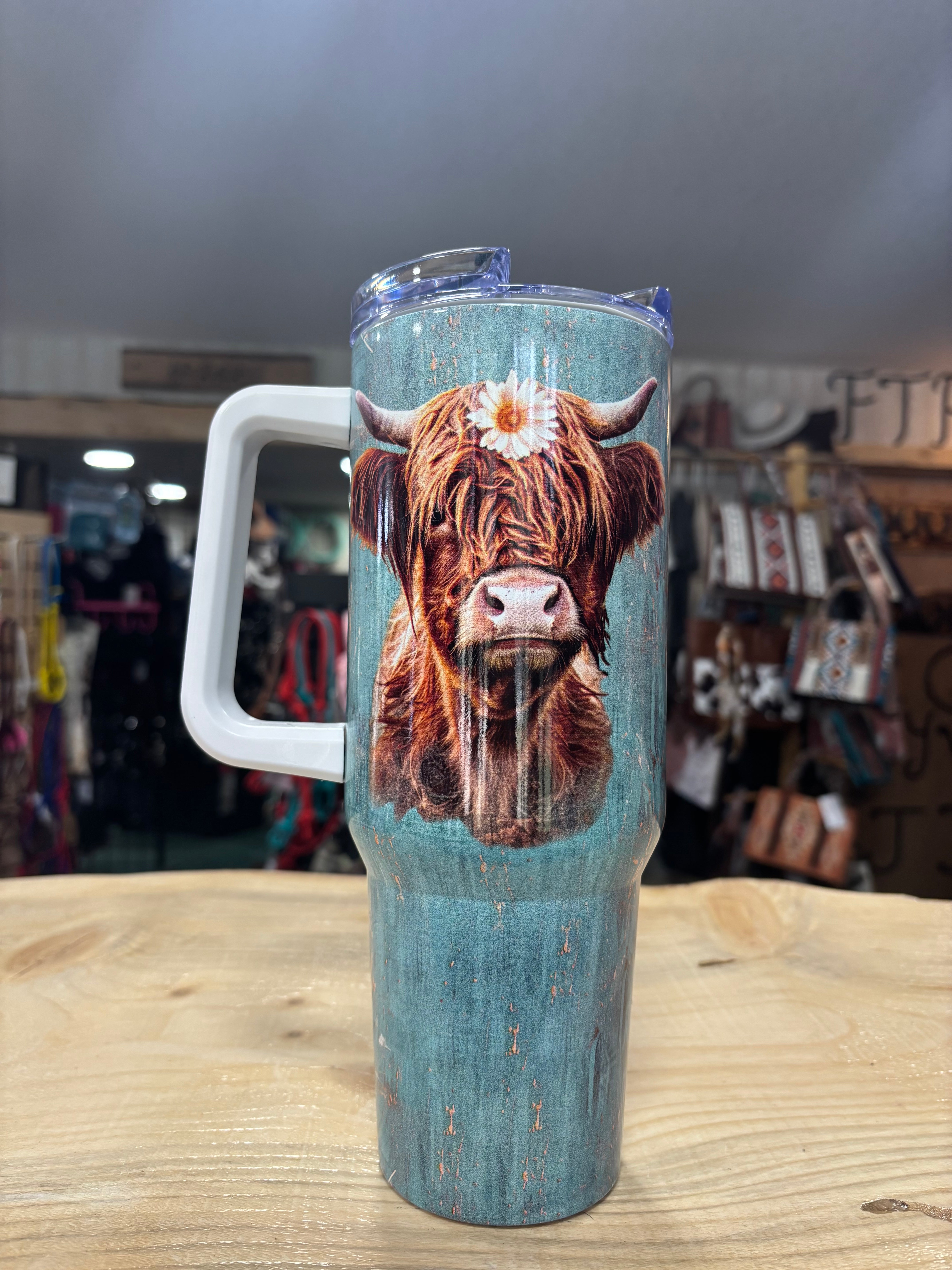 Stainless Steal 40oz Tumbler- Teal Highland Cow