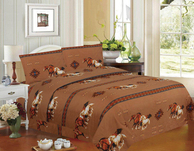 Super Soft Queen Sheet Set-Aztec Southwest Horse-Brown