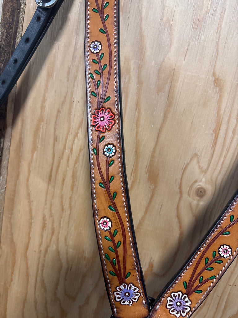 1D Saddlery Floral Tooled Wide Browband Headstall and Breastcollar Set