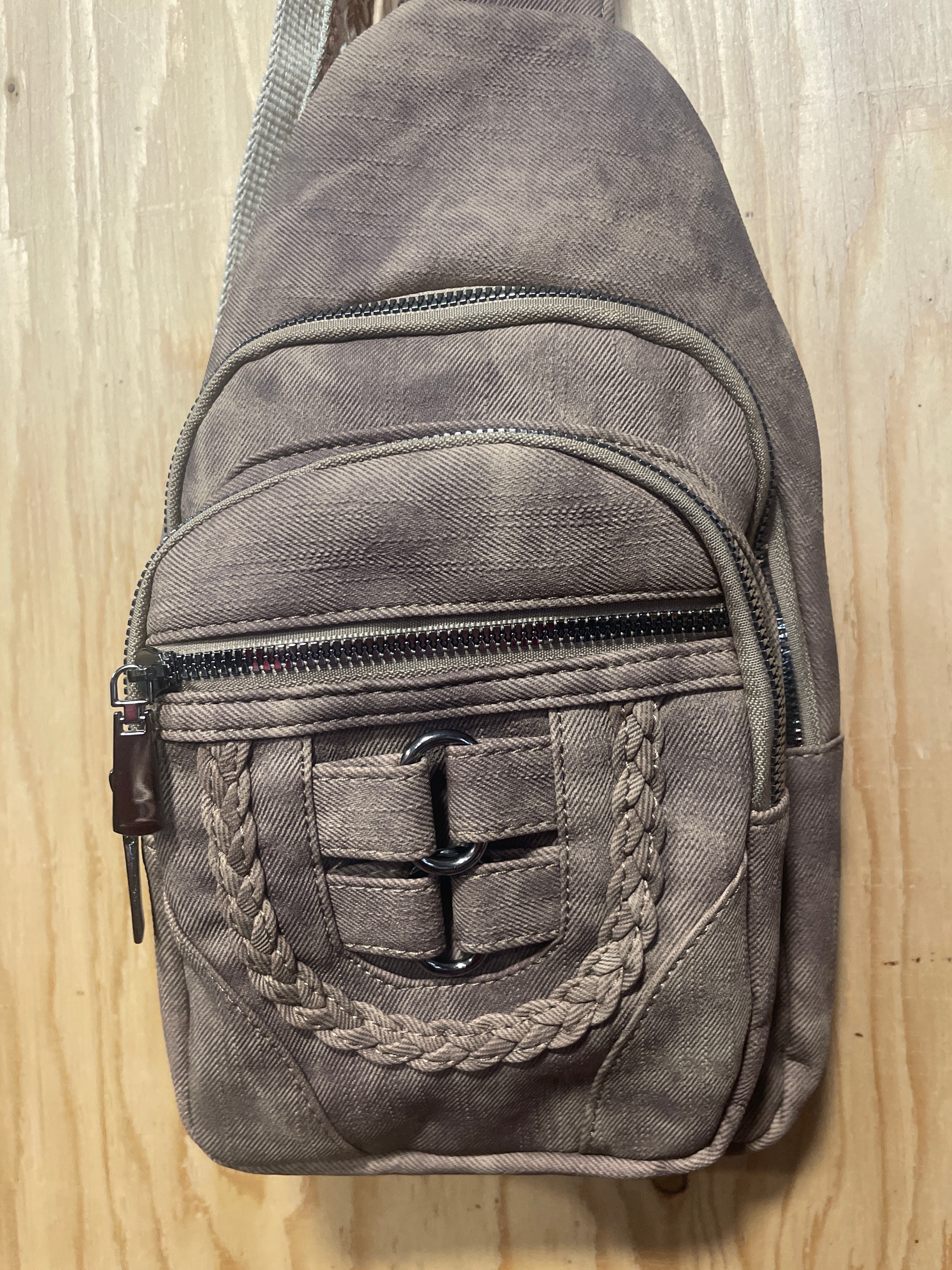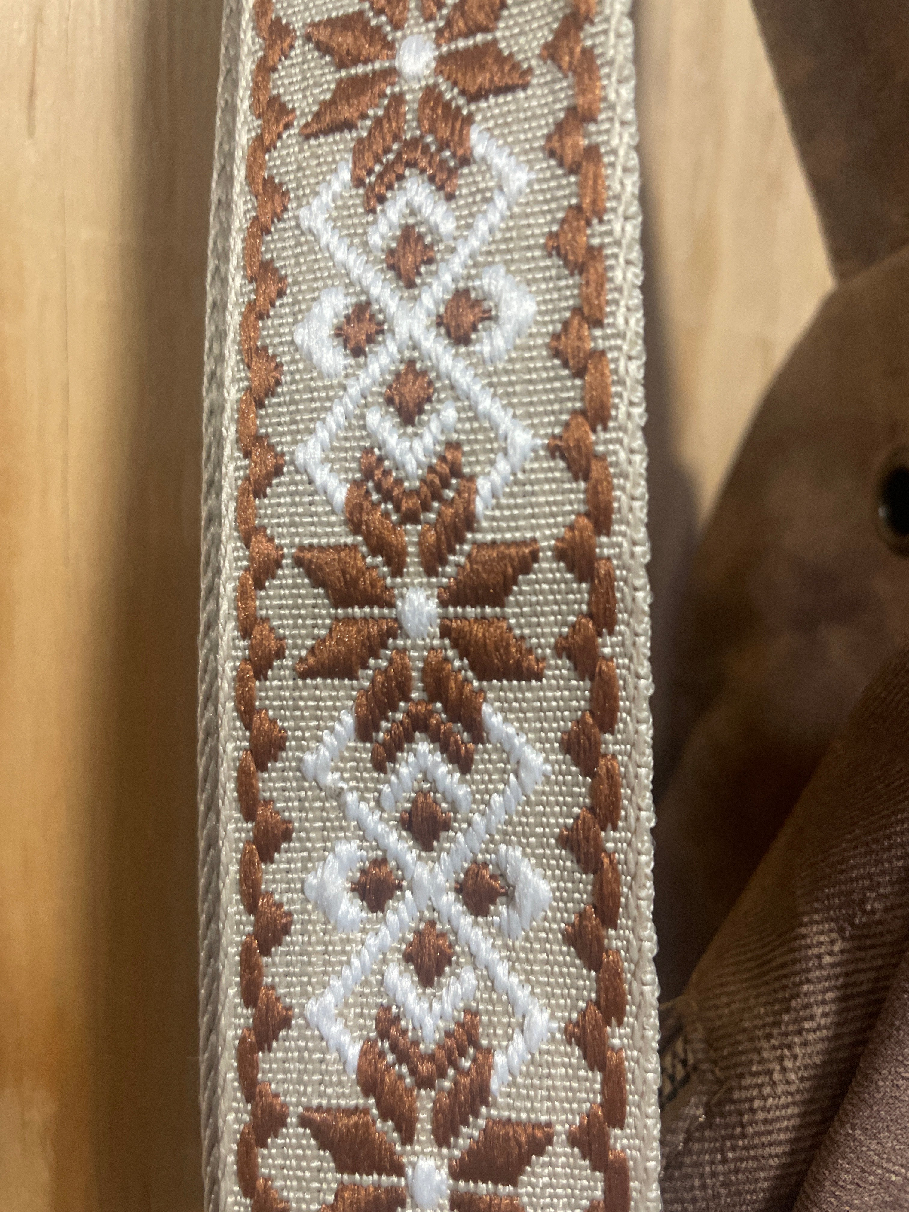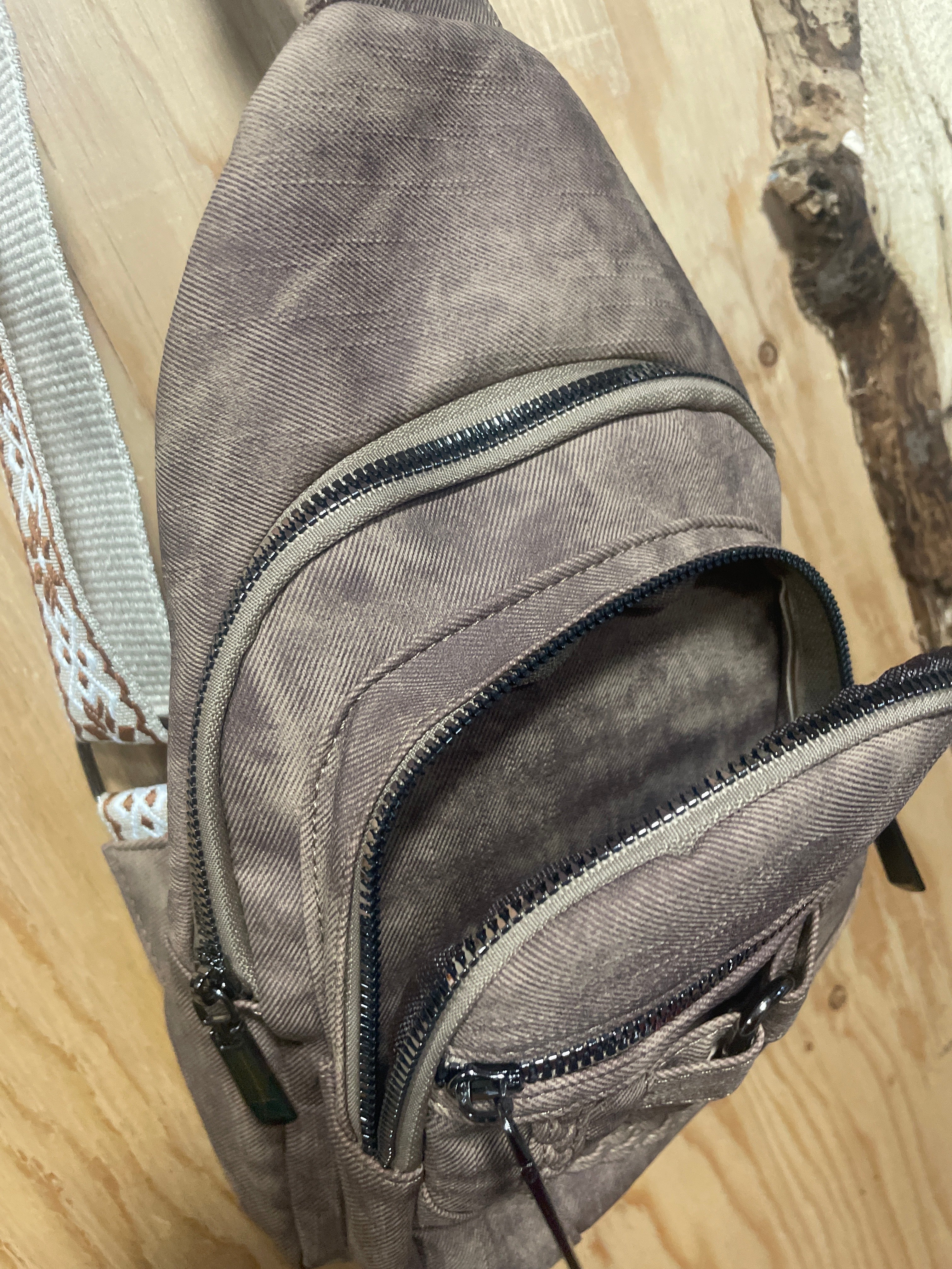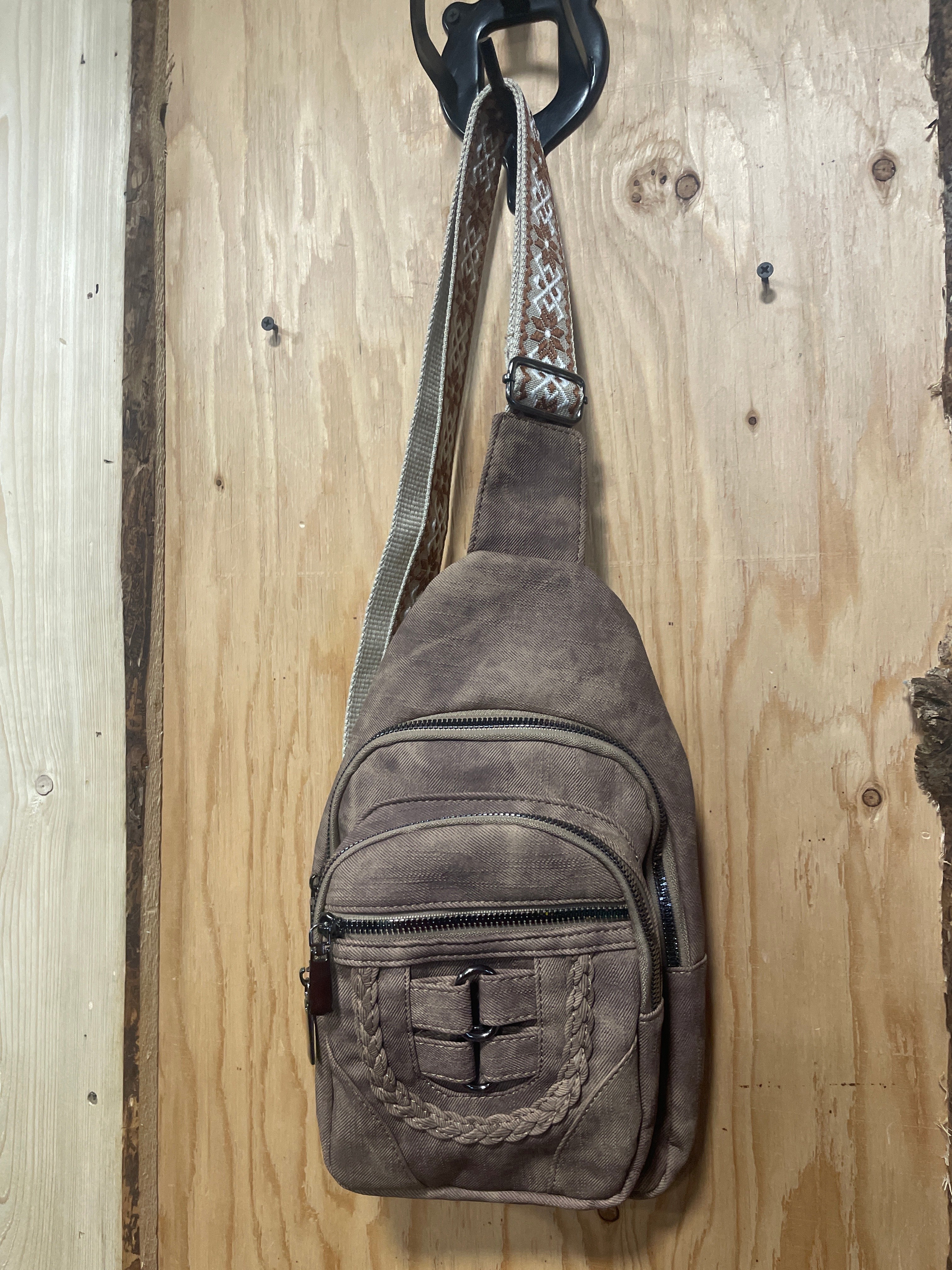 Canvas Crossbody Purse with Embroidered Strap.