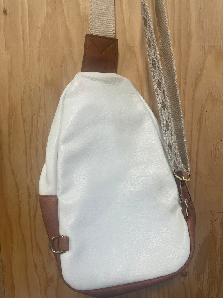 Faux Leather Crossbody with Aztec Band - White is backordered and will ship as soon as it is back in stock.