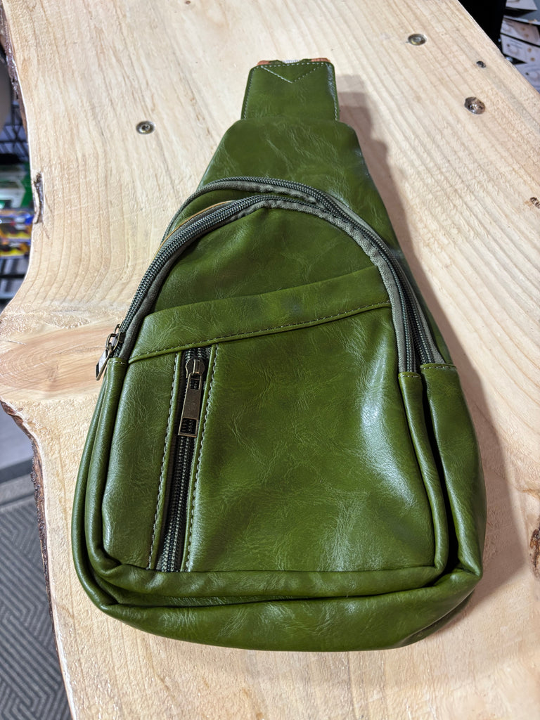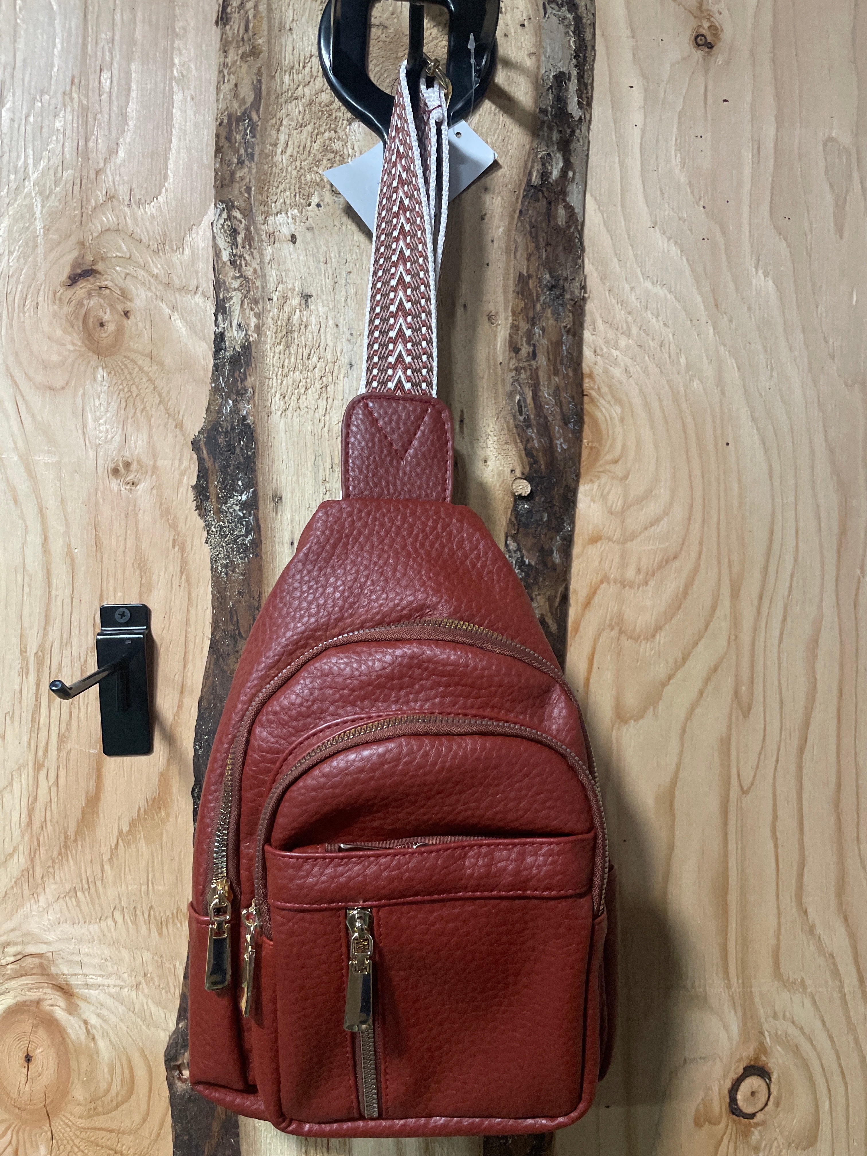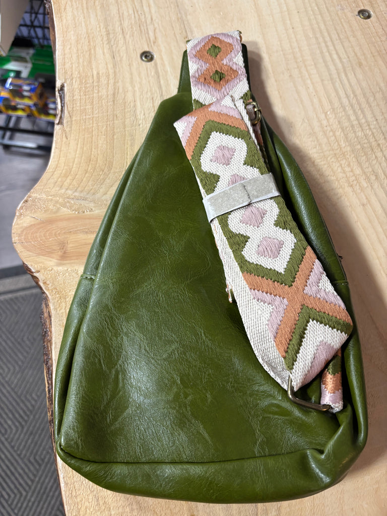 Zippered crossbody faux leather. Embroidered Aztec Strap.