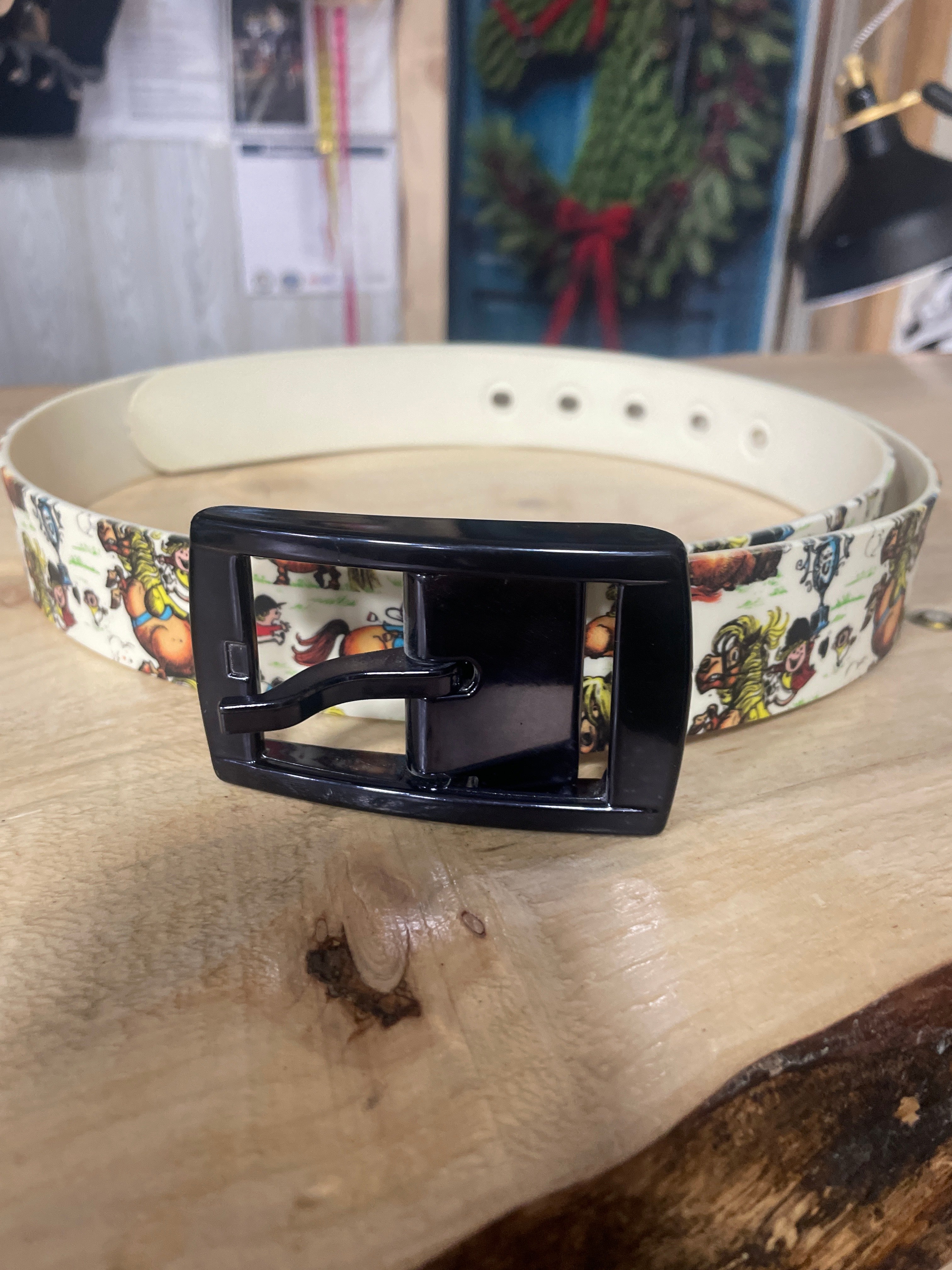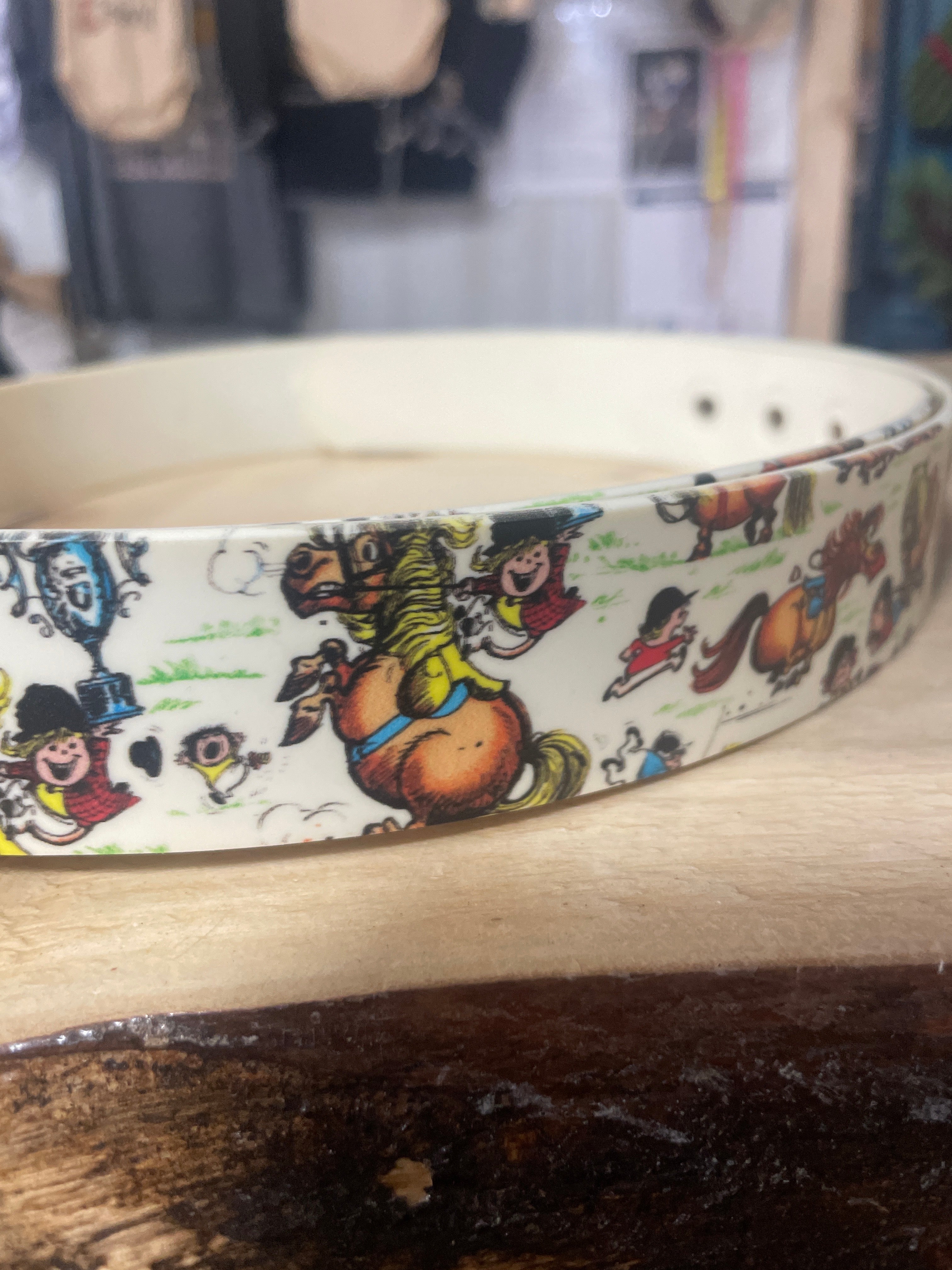 USED C-4 Equestrian Belt in a cute cartoon pony pattern. Excellent condition, a bit of wear on the inside. Measures 38” from buckle to middle hole. Retail new for $37