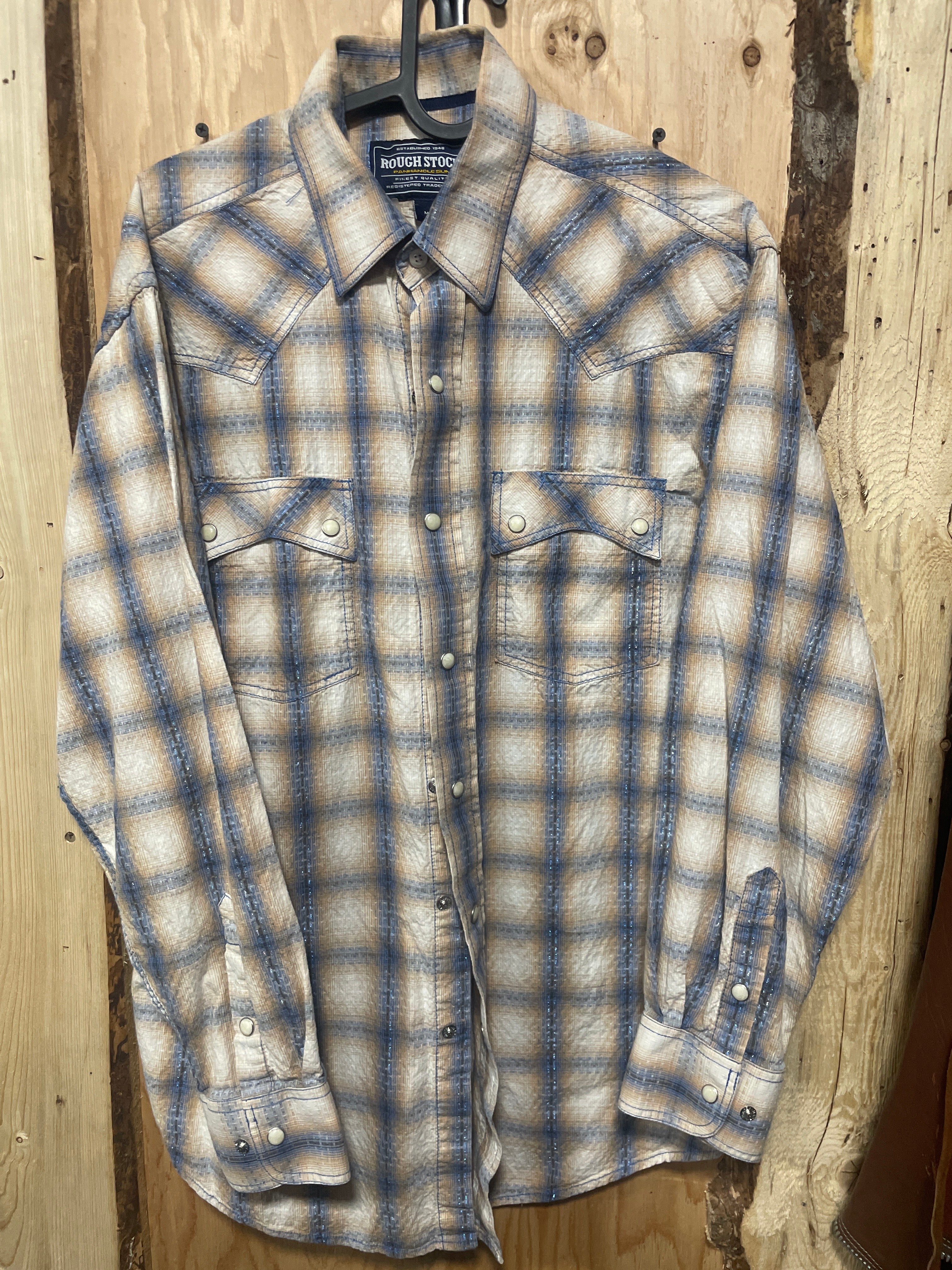 USED-Mens Rough Stock Panhandle Slim Rodeo Shirt-Size M is backordered and will ship as soon as it is back in stock.