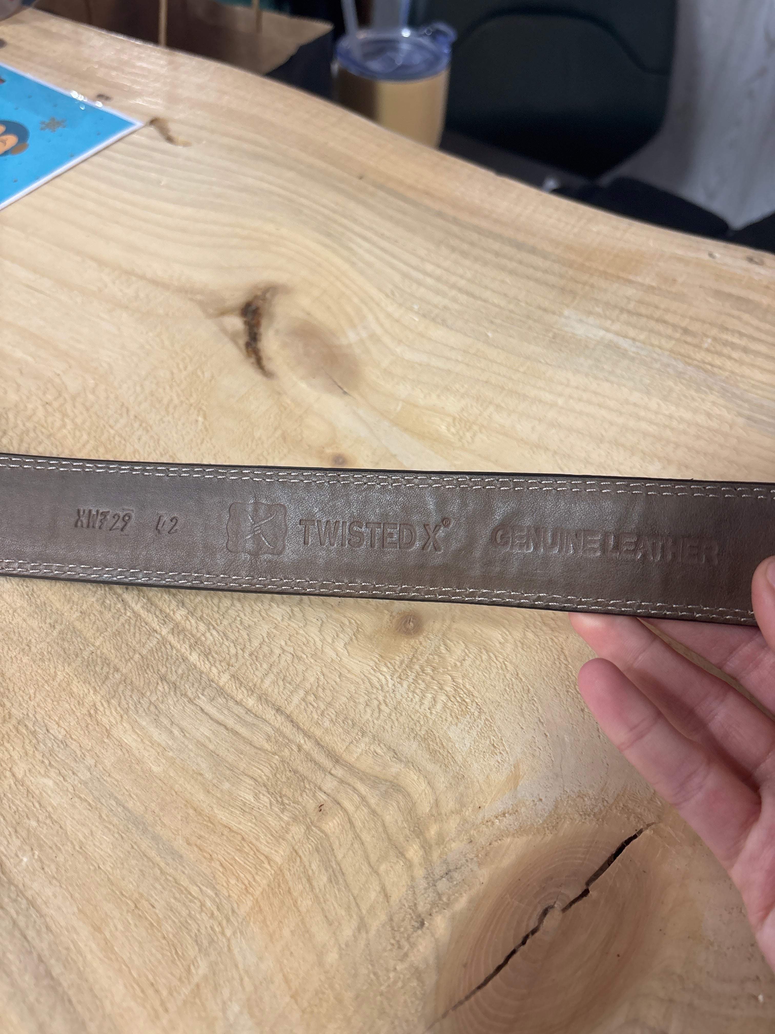 USED- Twisted X Men's Distressed Bomber Strap Leather Belt- 42 is backordered and will ship as soon as it is back in stock.
