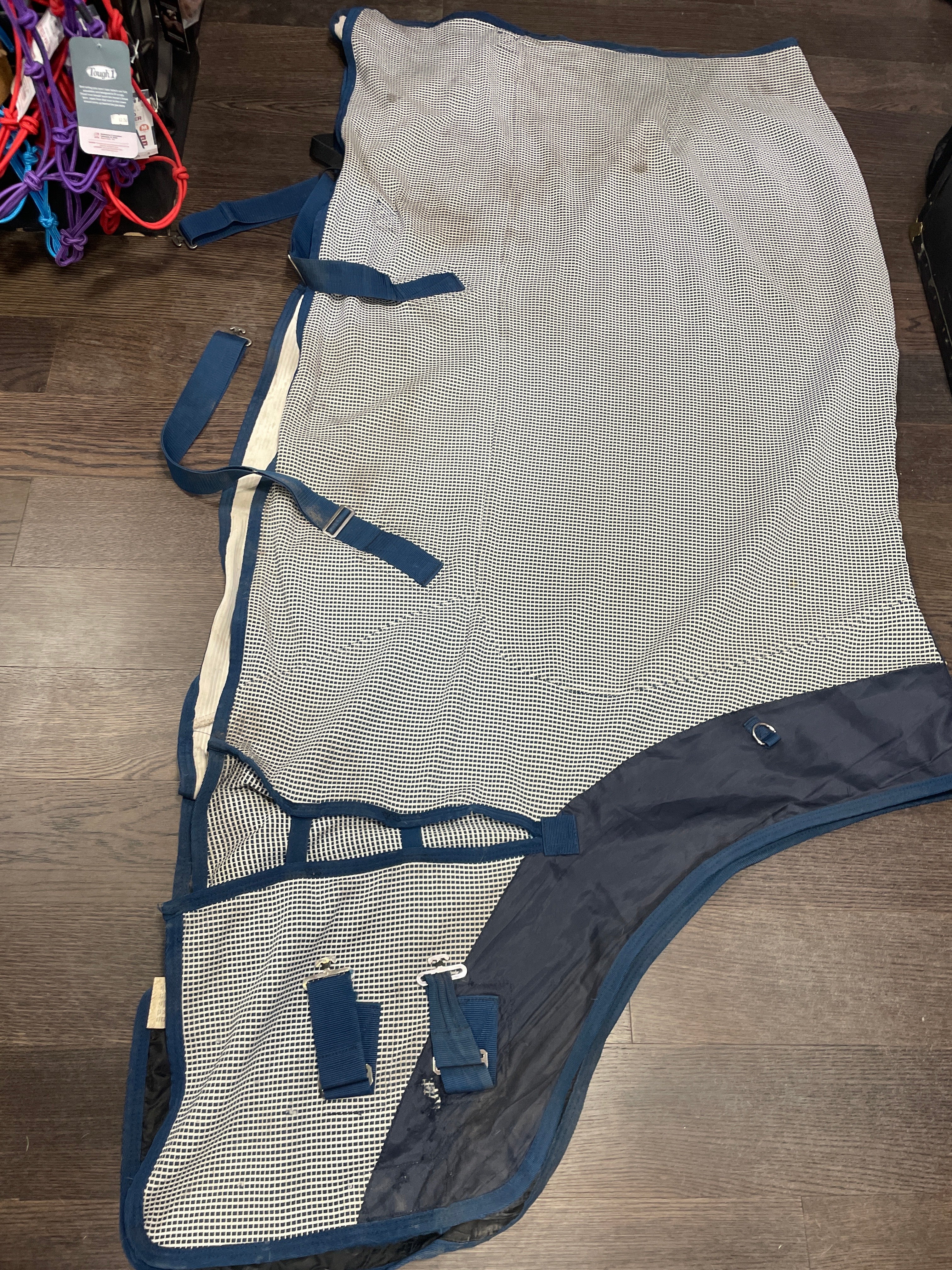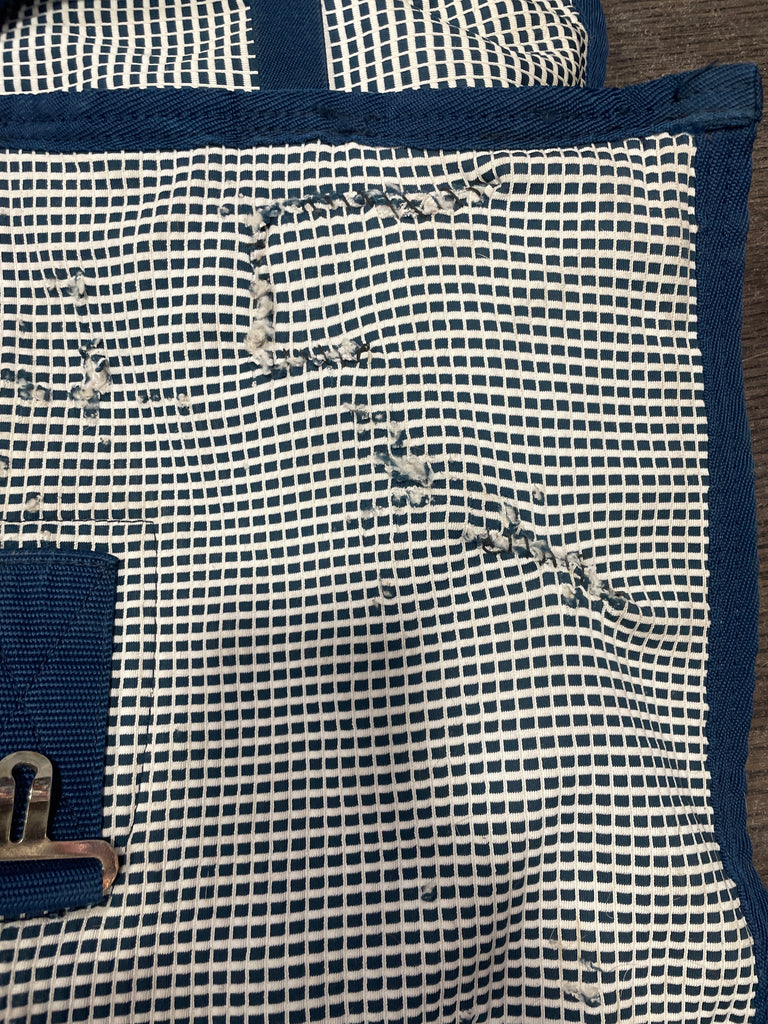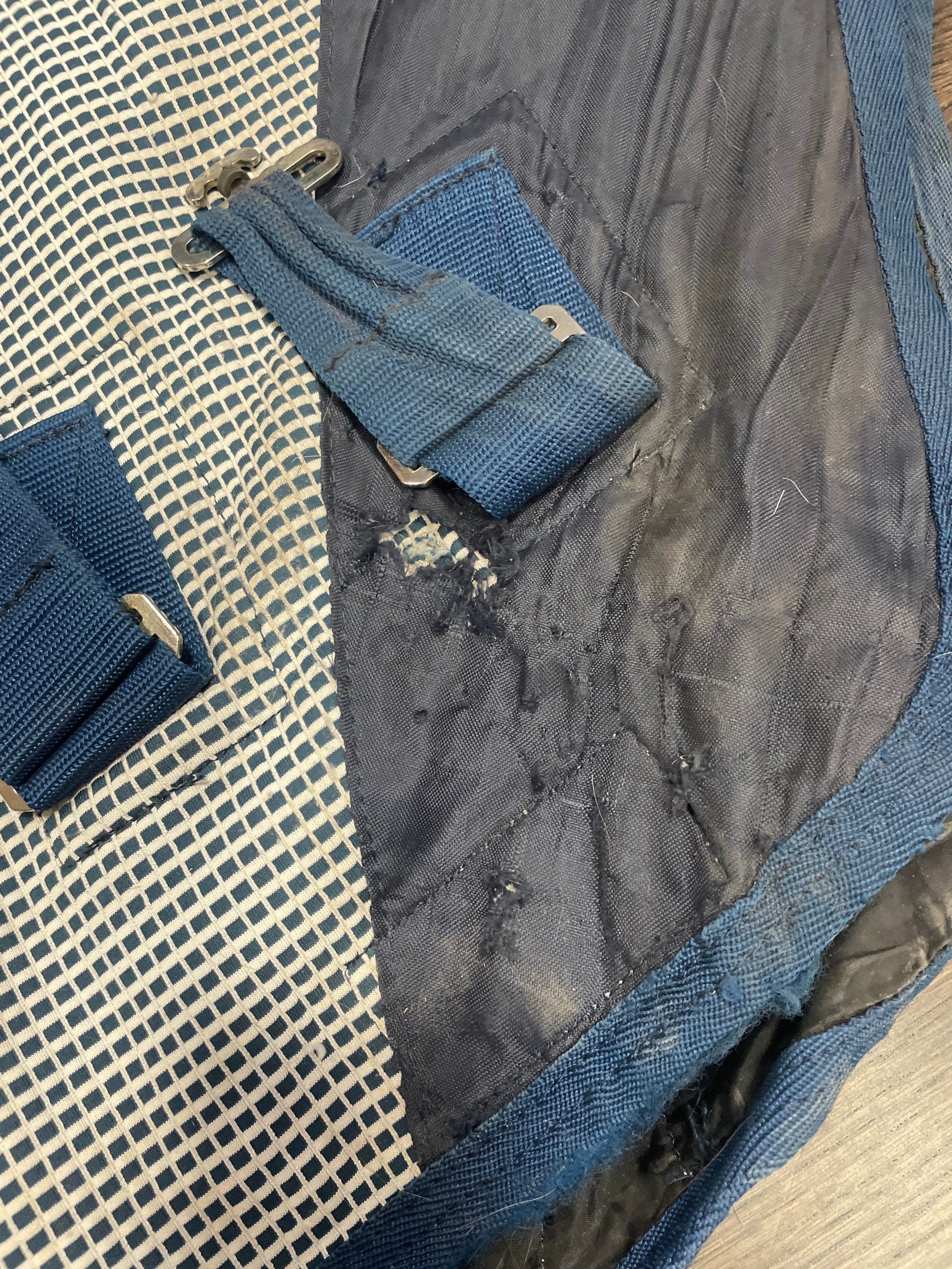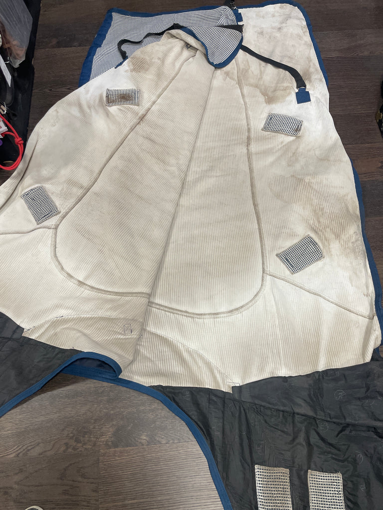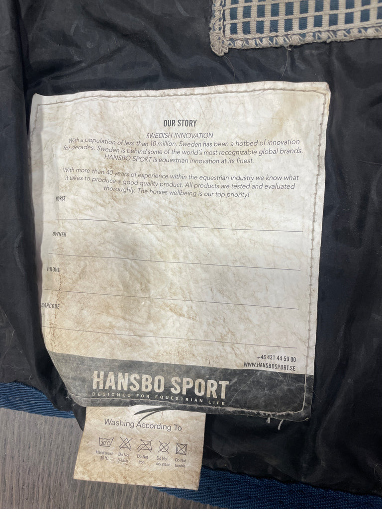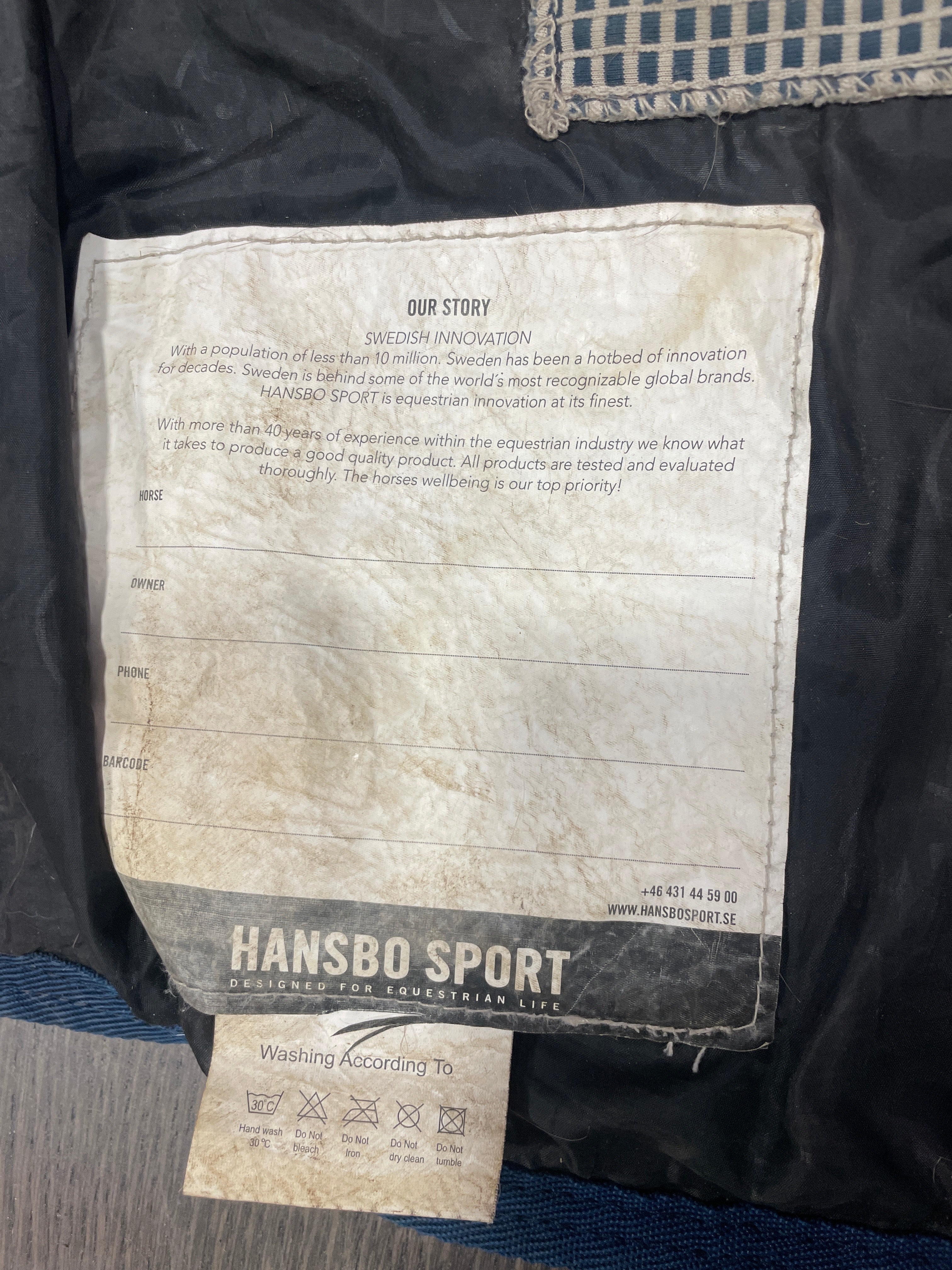 Good used condition Hansbo Sport Ceramic and Magnetic therapy sweat and travel blanket. A few small rips, some dirt but in overall great condition. A few barb wire pulls, small rips and one hand-sewn repair. Size 81.
