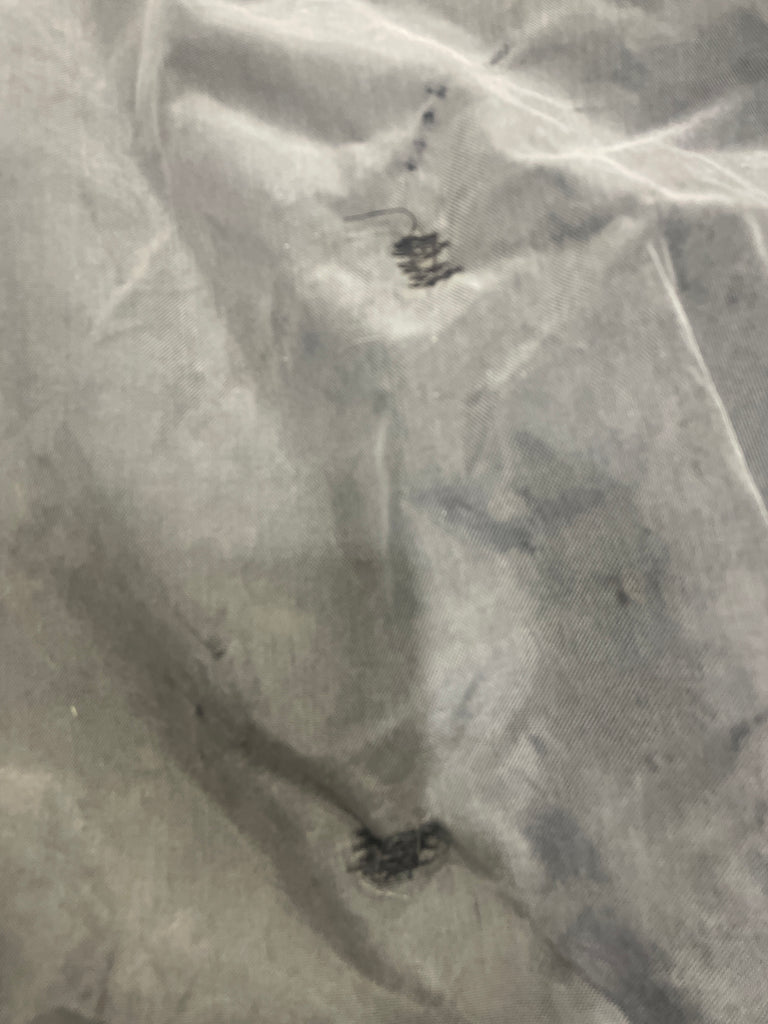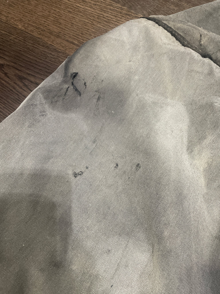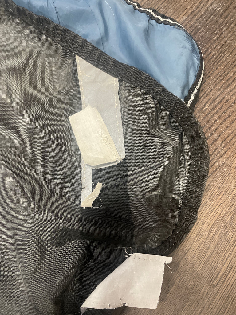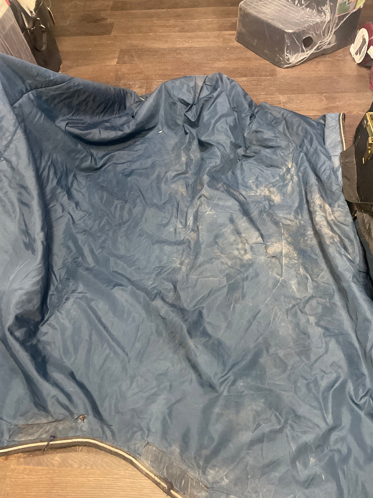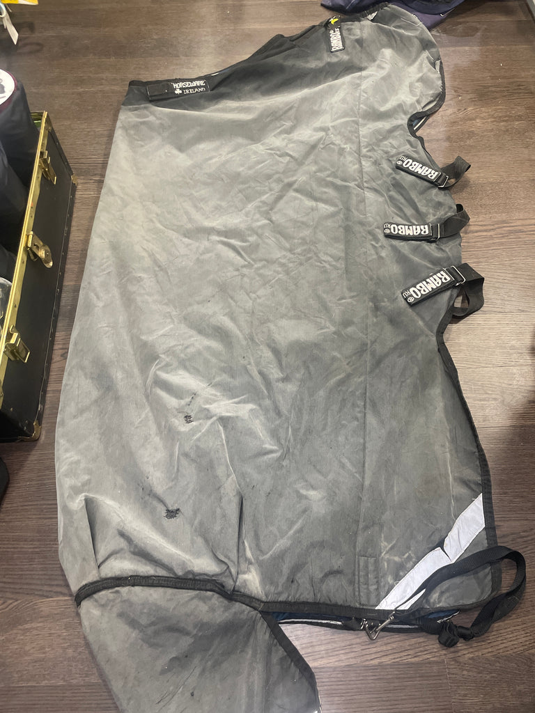 Well loved Rambo 200g winter turnout. Has been washed, has some minor dirt on underside and some rips that have been hand sewn. Missing some Velcro on front cover of connection but does not affect use. Looks like it could use a re waterproofing. Still some life left in this high end turnout. Price reflects condition.  Size- 78"