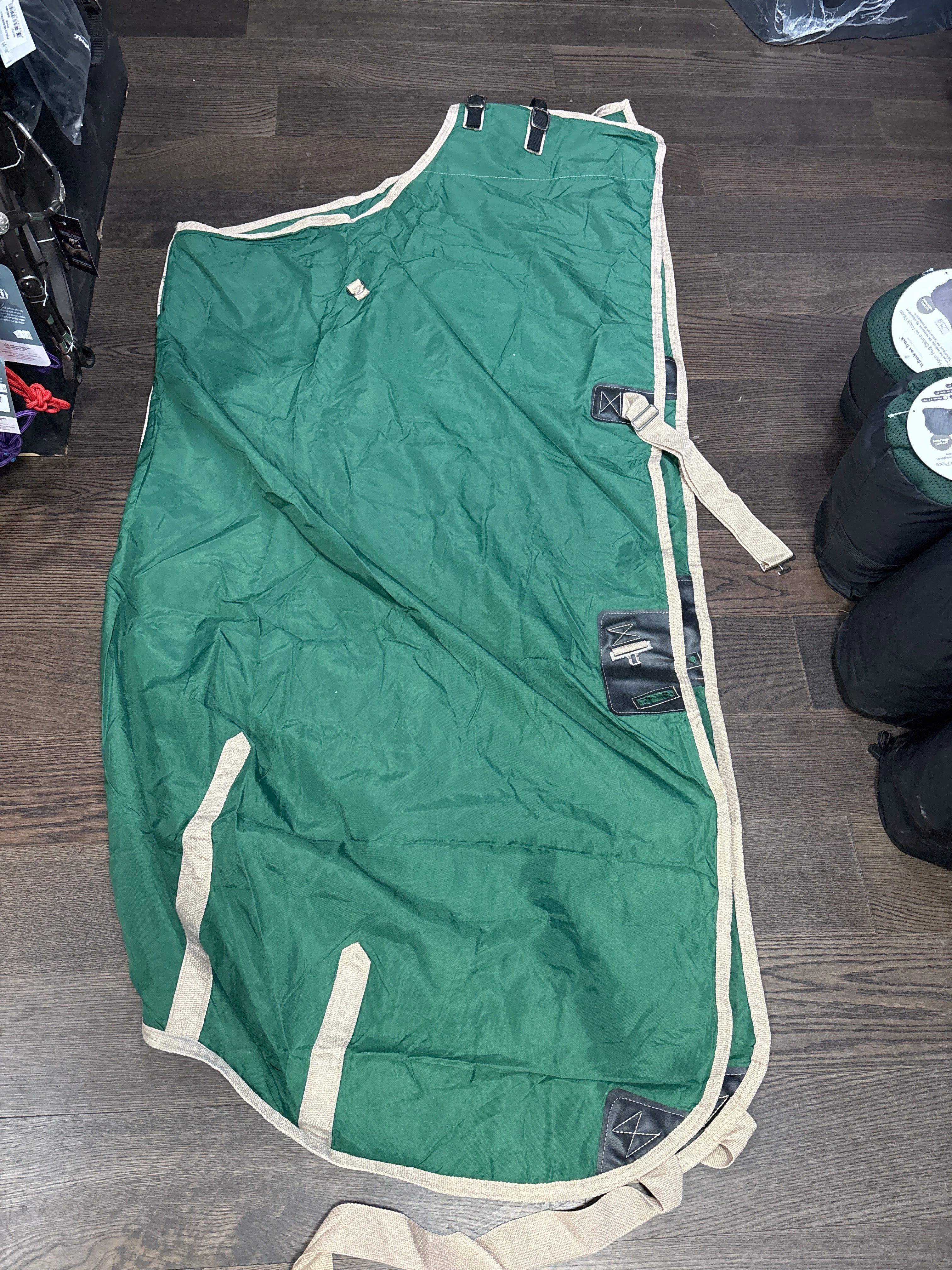 Excellent condition, doesn't look like its been on a horse, has a minor tear, see pics. Has trophy writing on it. Size- 80". These blankets are handmade in Cochrane Alberta.