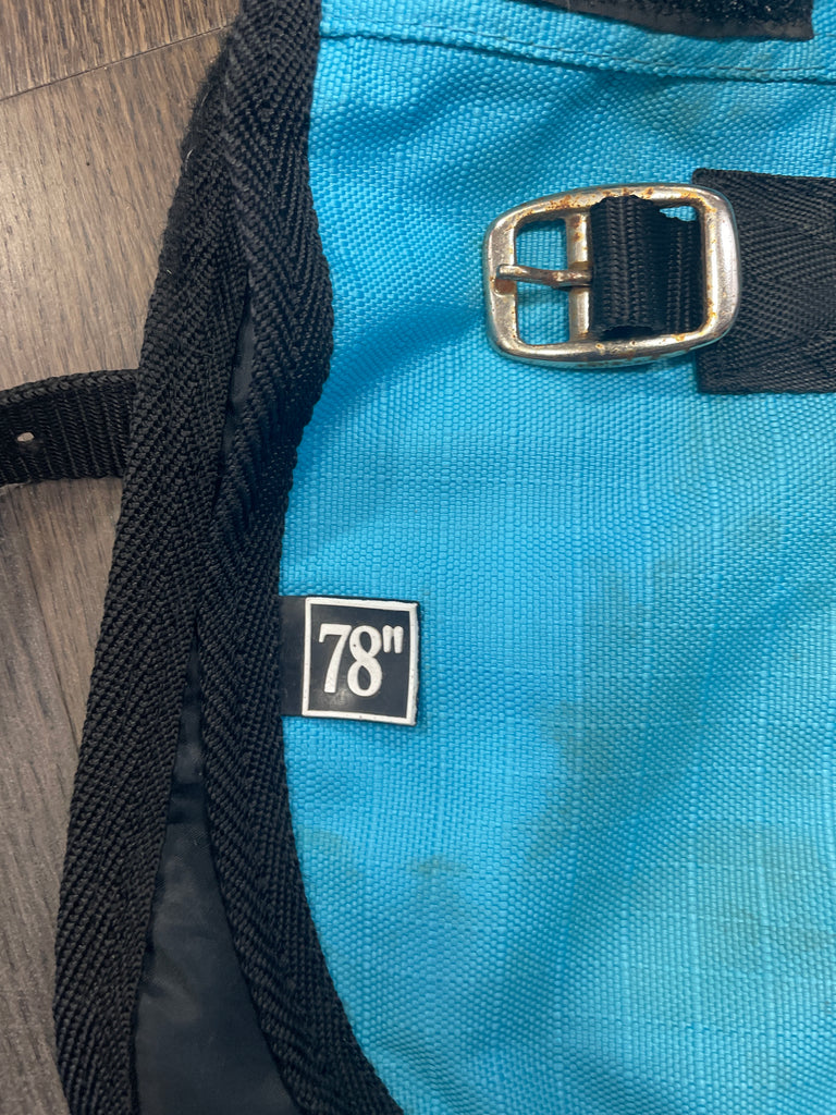 Excellent condition Tough 1 Rain Sheet. A bit dirty, 1 small rip in the liner seam but otherwise like new. Size 78. Teal.