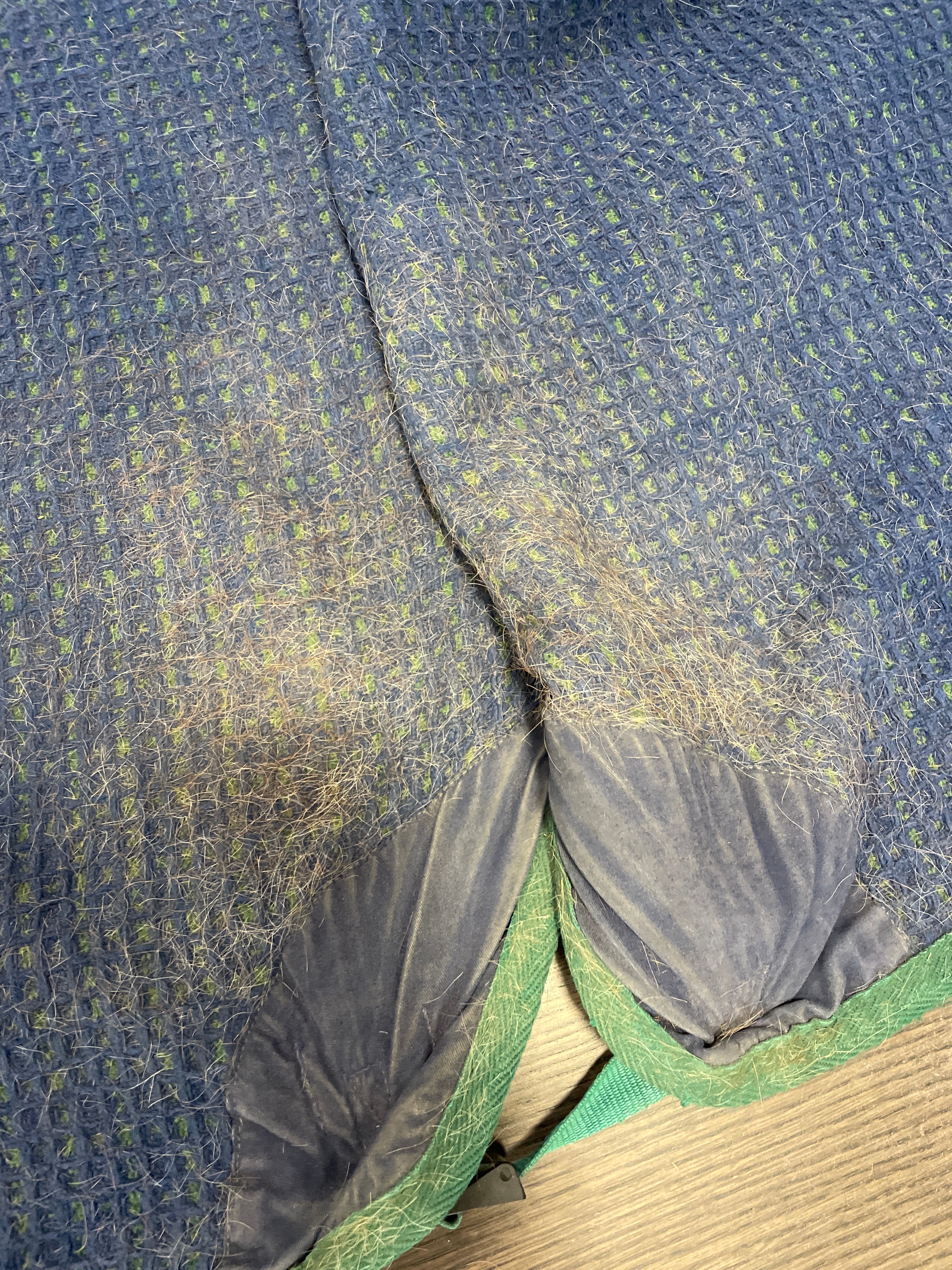 Good used condition Wool Cooler. Lots of hair but otherwise like new condition. Made in England tags. Says it is a Size 78 but measures from chest to back at 72”.