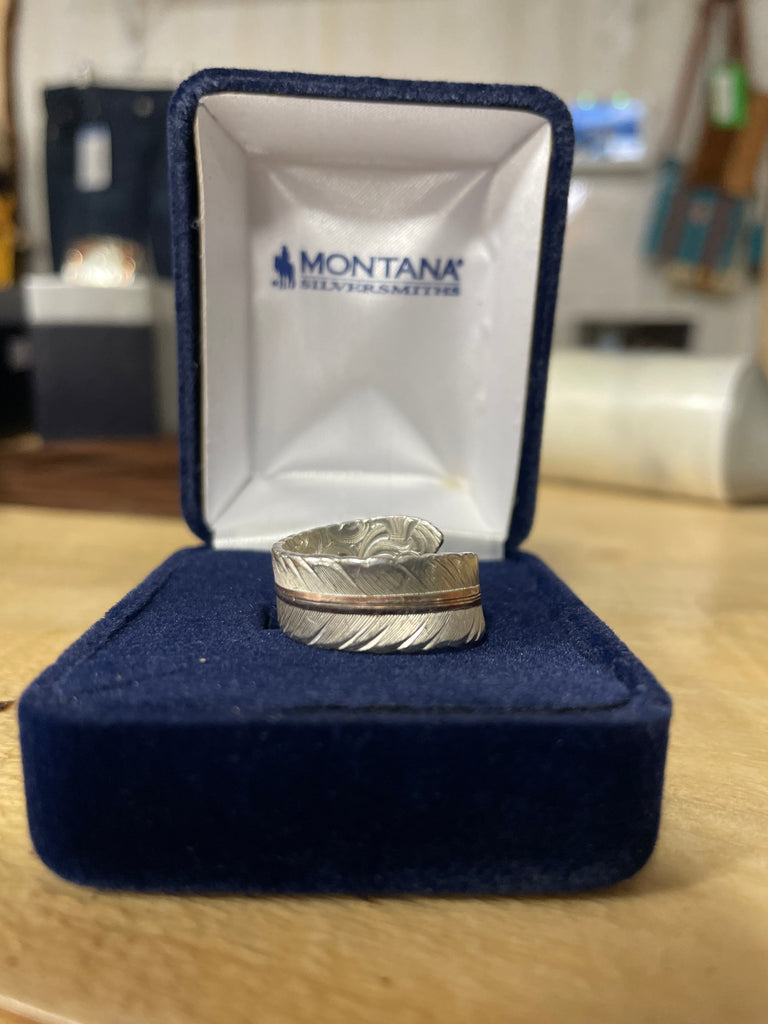 USED-Montana Silversmith Rose gold inlay Feather Ring is backordered and will ship as soon as it is back in stock.