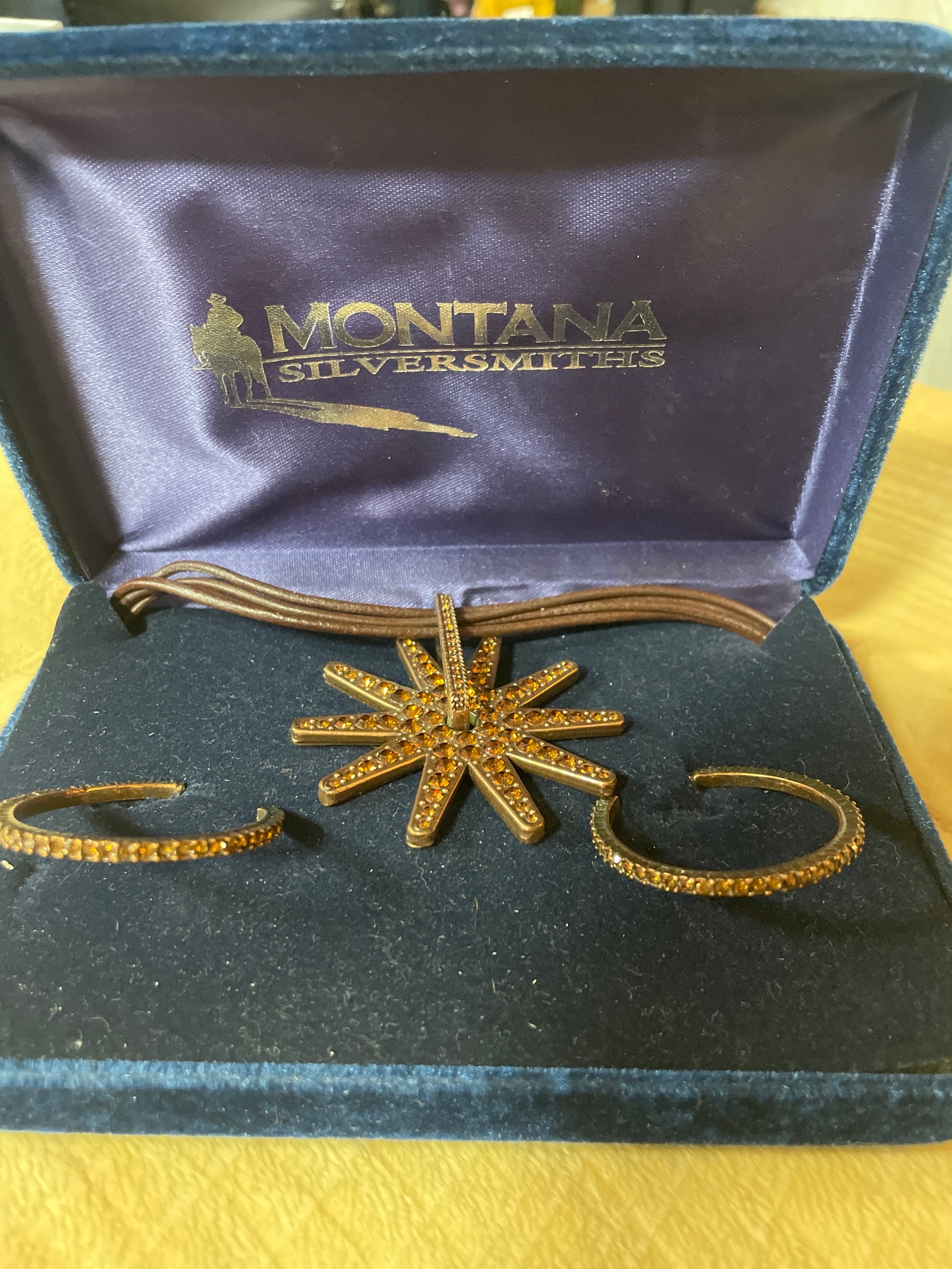 USED- Montana Silversmith Vintage Bronze Spur Rowel Jewellery Set is backordered and will ship as soon as it is back in stock.