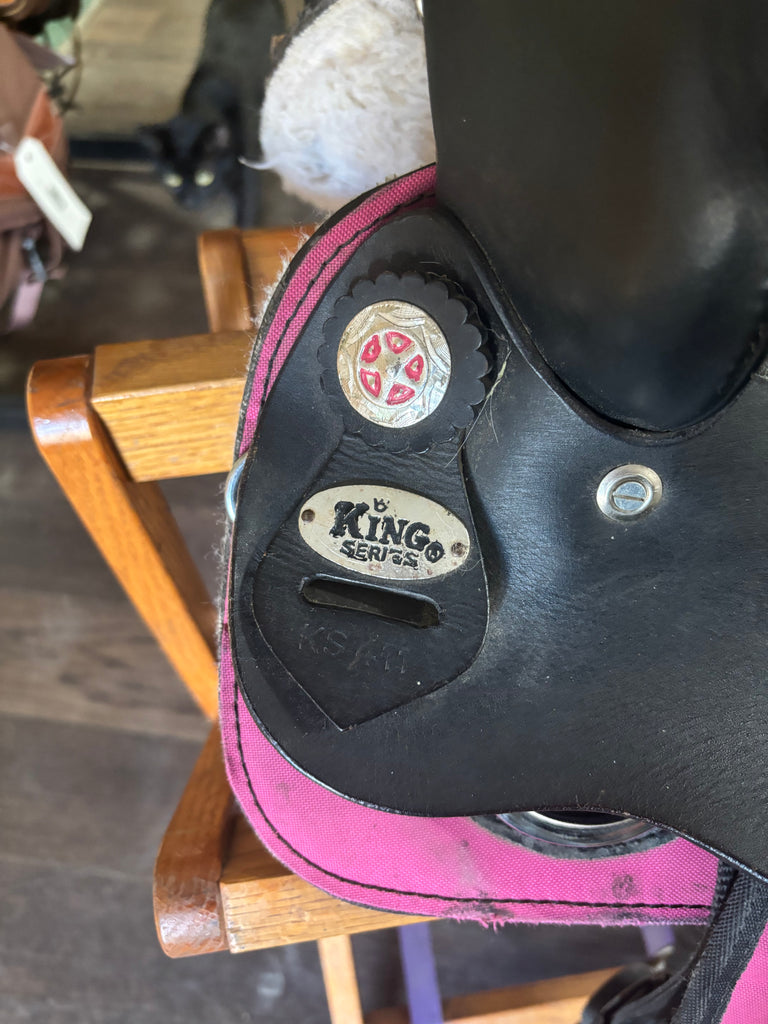 USED- 10.5" King Series Youth Pink Synthetic Saddle is backordered and will ship as soon as it is back in stock.