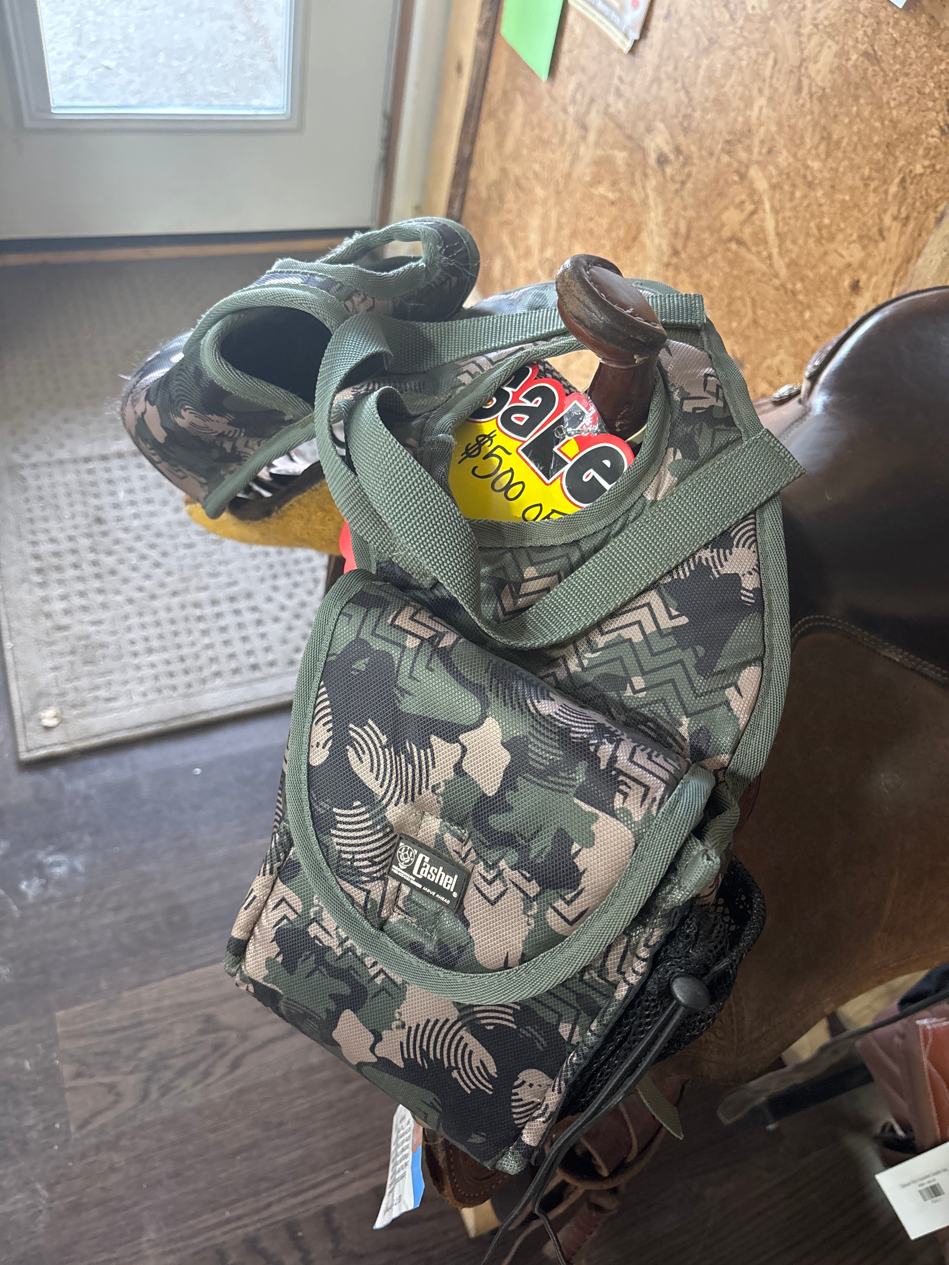 USED- Cashel Lunch and Bottle Horn Bag- Camo is backordered and will ship as soon as it is back in stock.