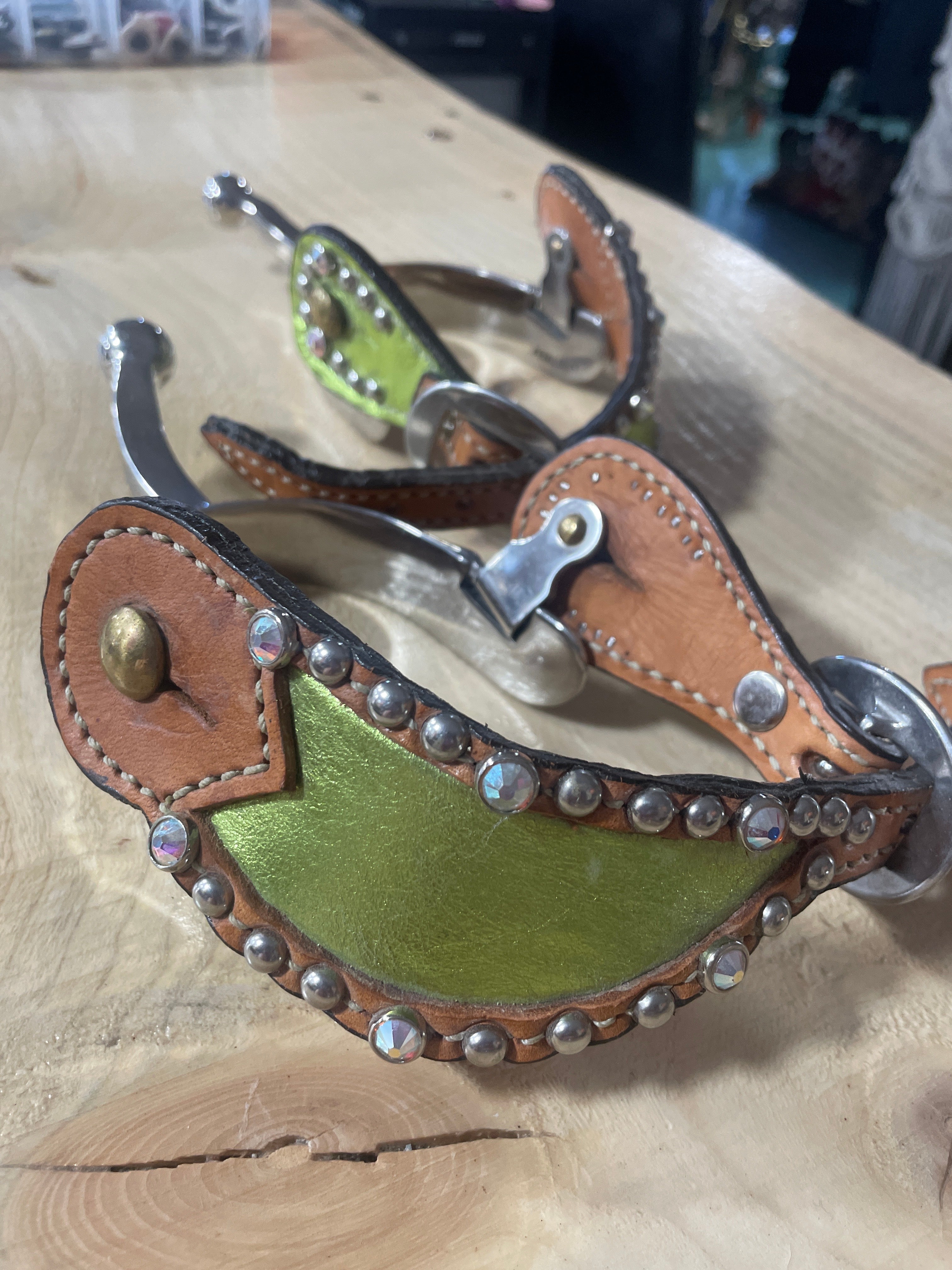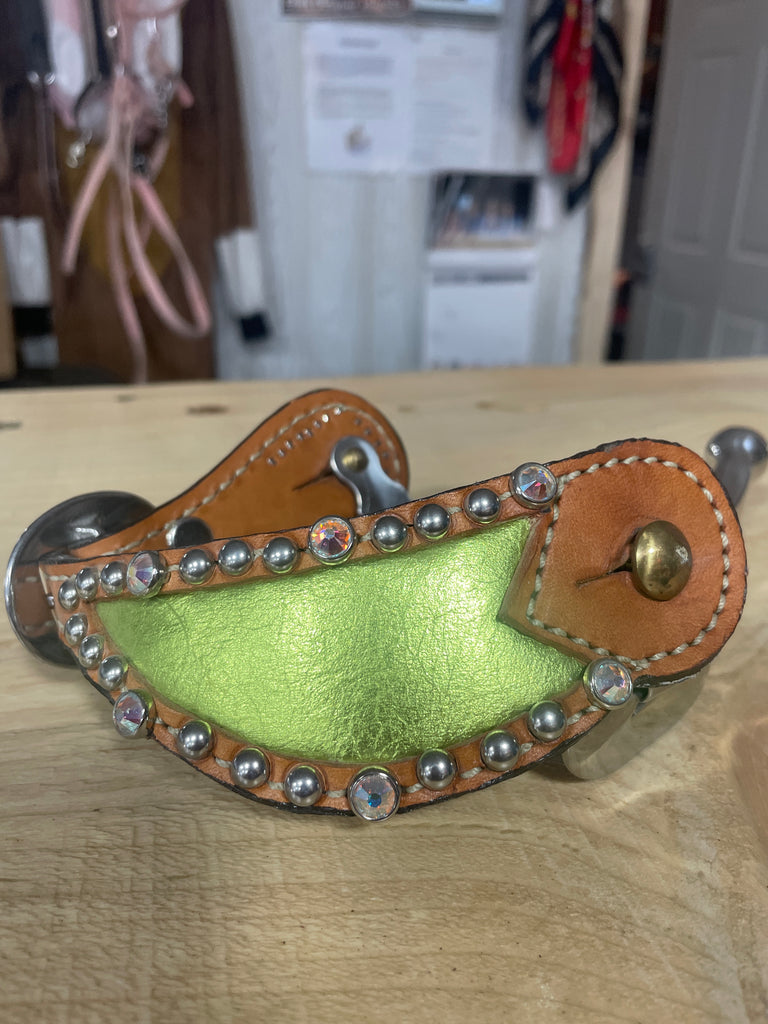 Spur straps Alamo metallic lime green. Retails new for $90USD
