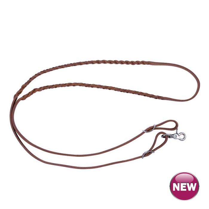 • Harness leather, 3 plait braided leather, with a scissor snap and Conway buckles.
