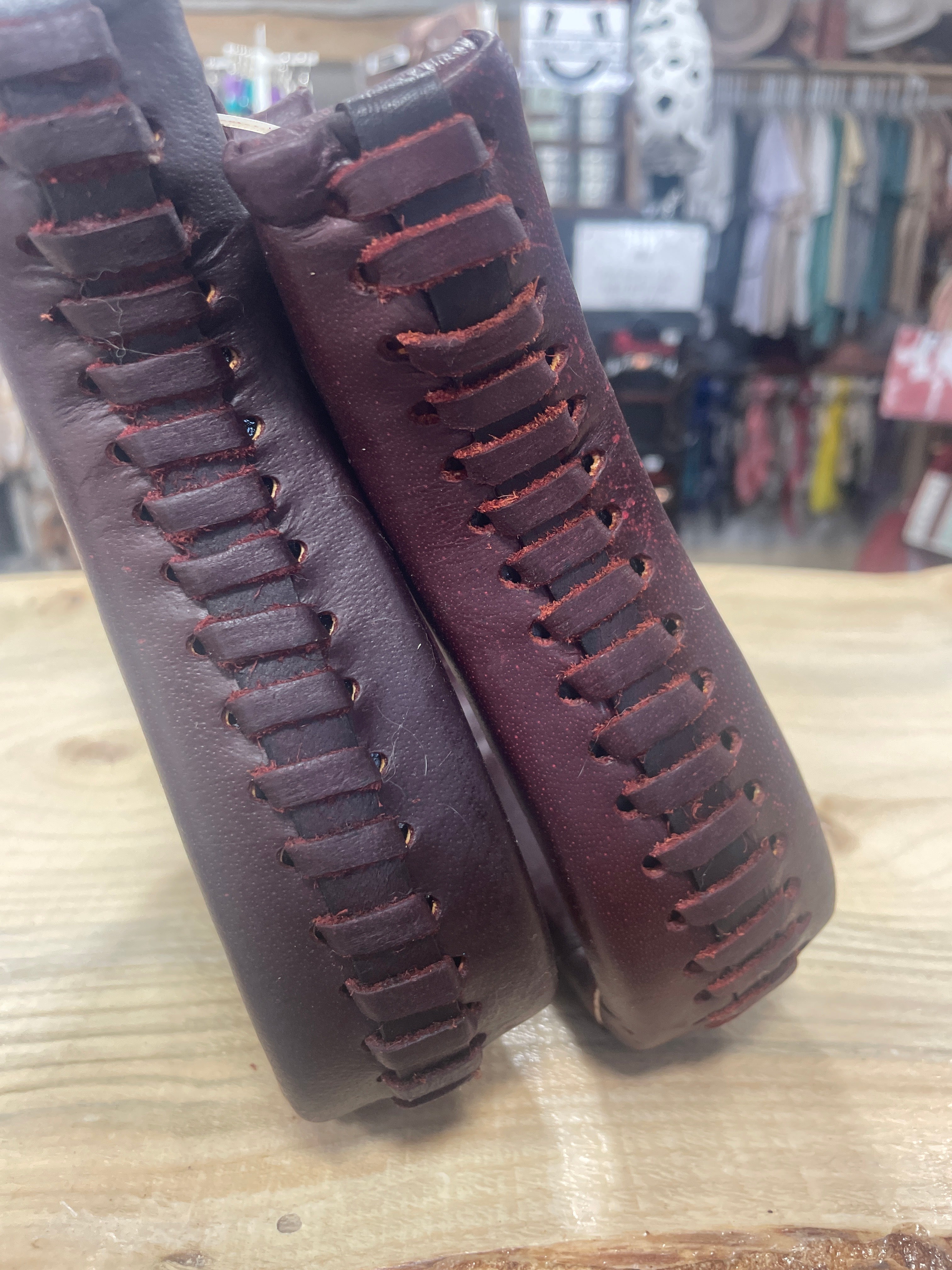 Leather bell bottom stirrups in Brown. Hand finished and oiled. Slight colour difference between the two stirrups .See Pictures. Selling as-is Final Sale.