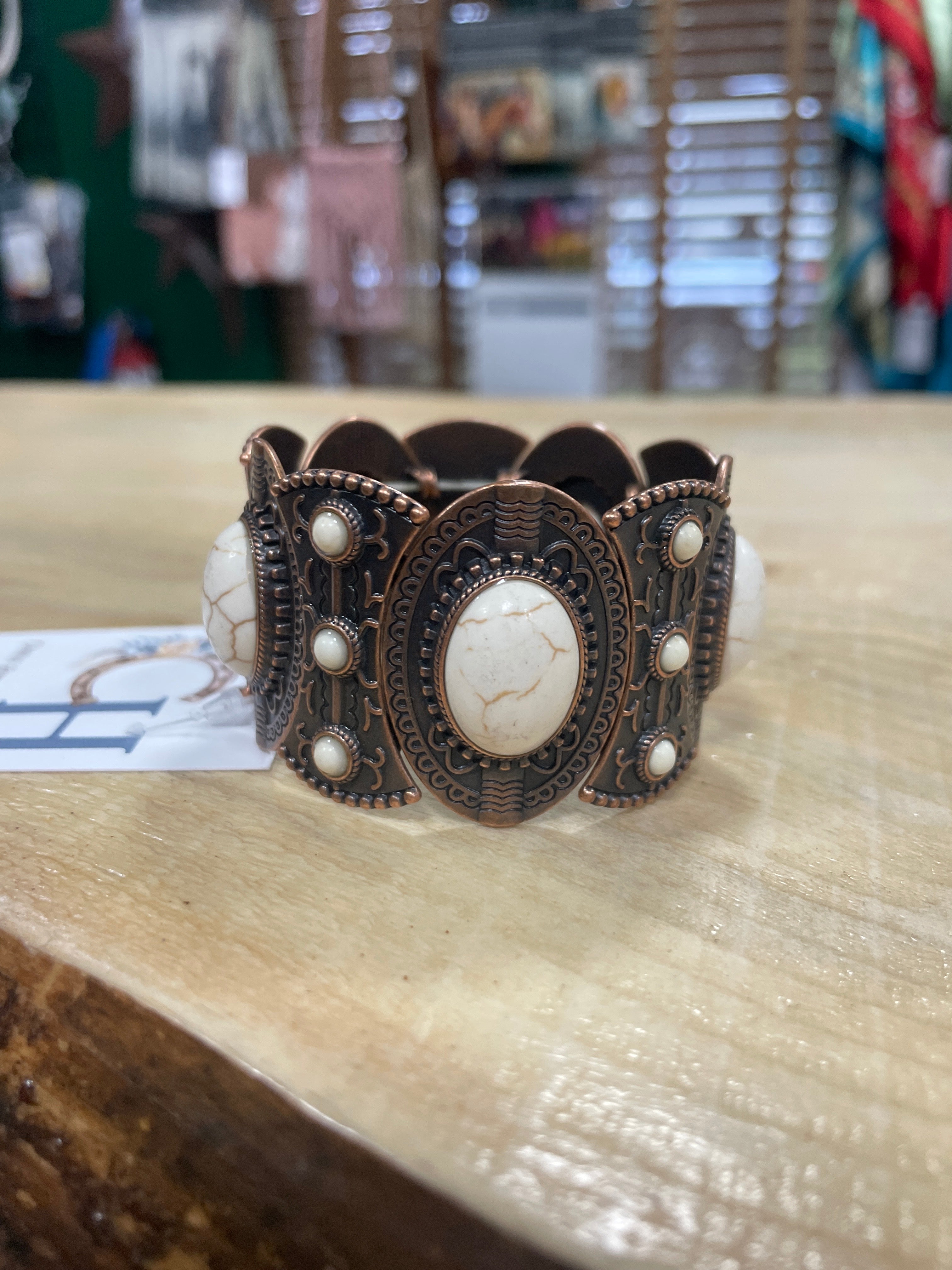 Copper White Buffalo Turquoise Stretch Bracelet. One Size fits most.