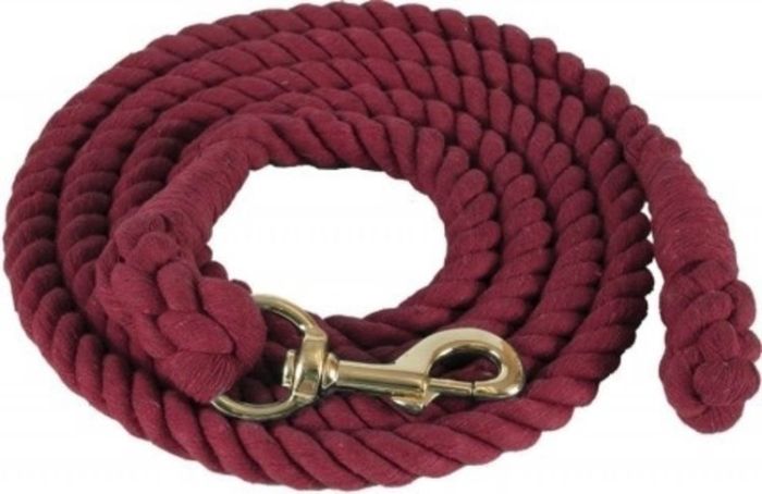 3/4″ x 10′ cotton lead rope with 1 1/8” brass plated bolt snap.
