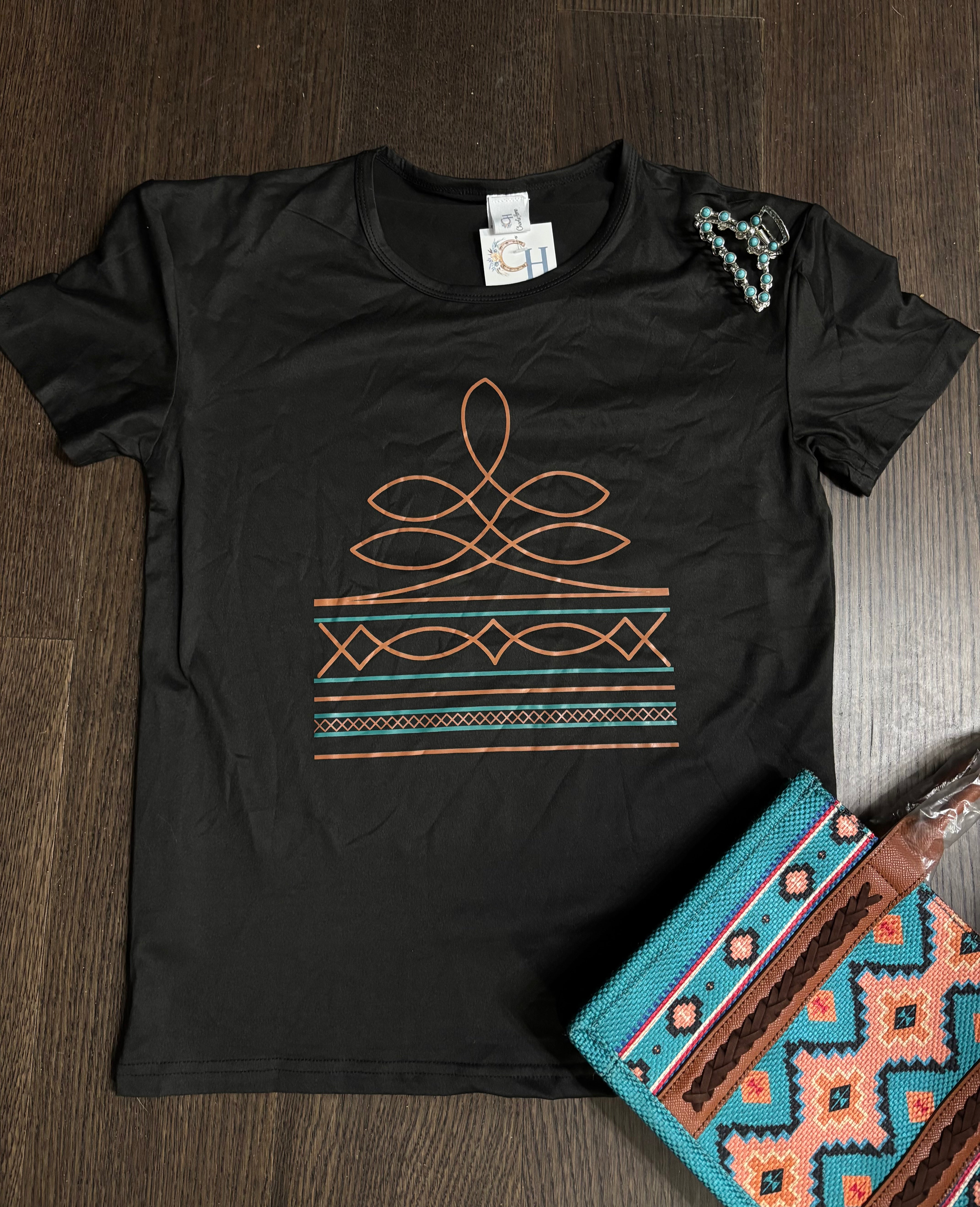 Green & Brown Boot Stitch Tee- Black - Small is backordered and will ship as soon as it is back in stock.