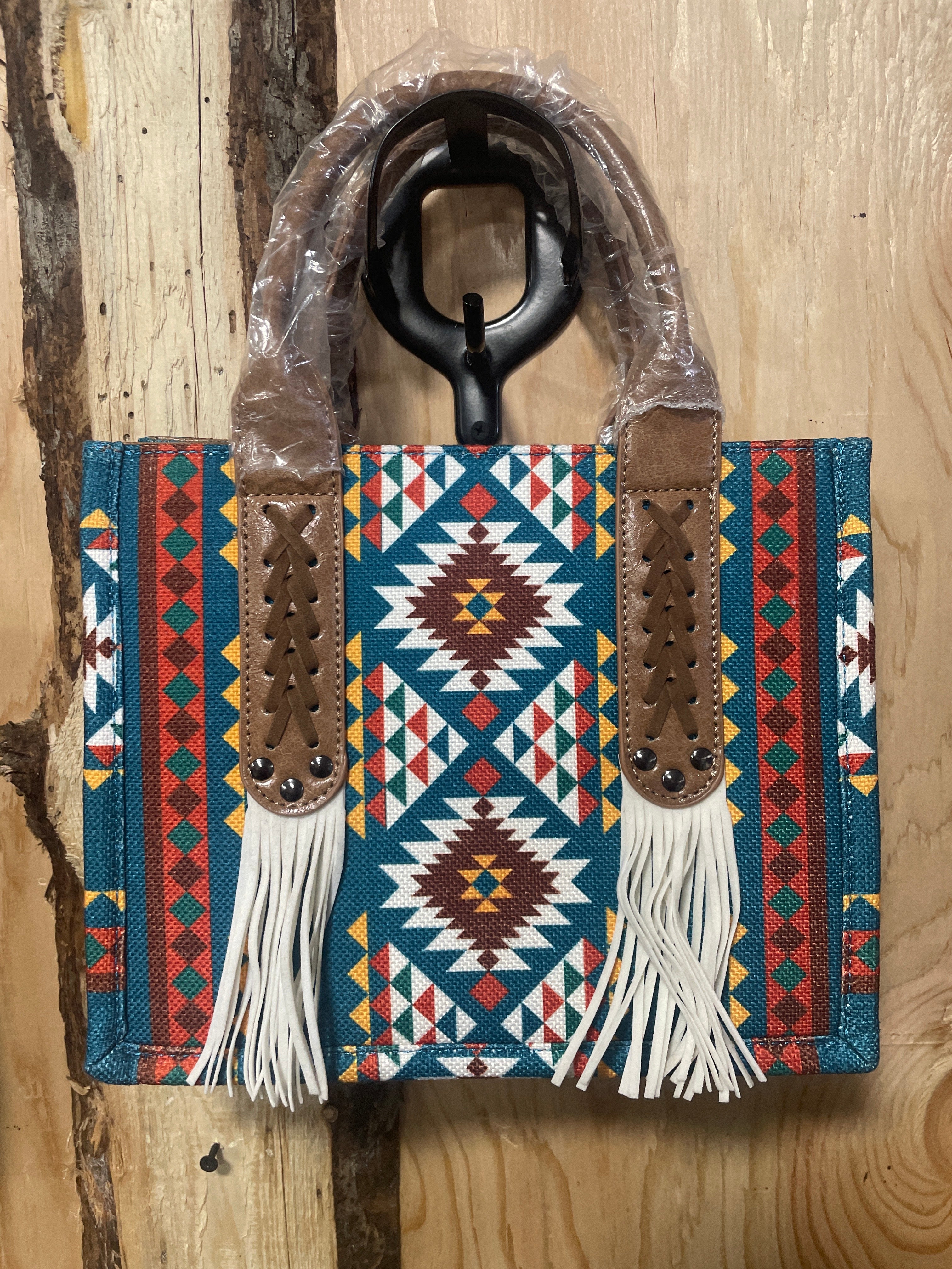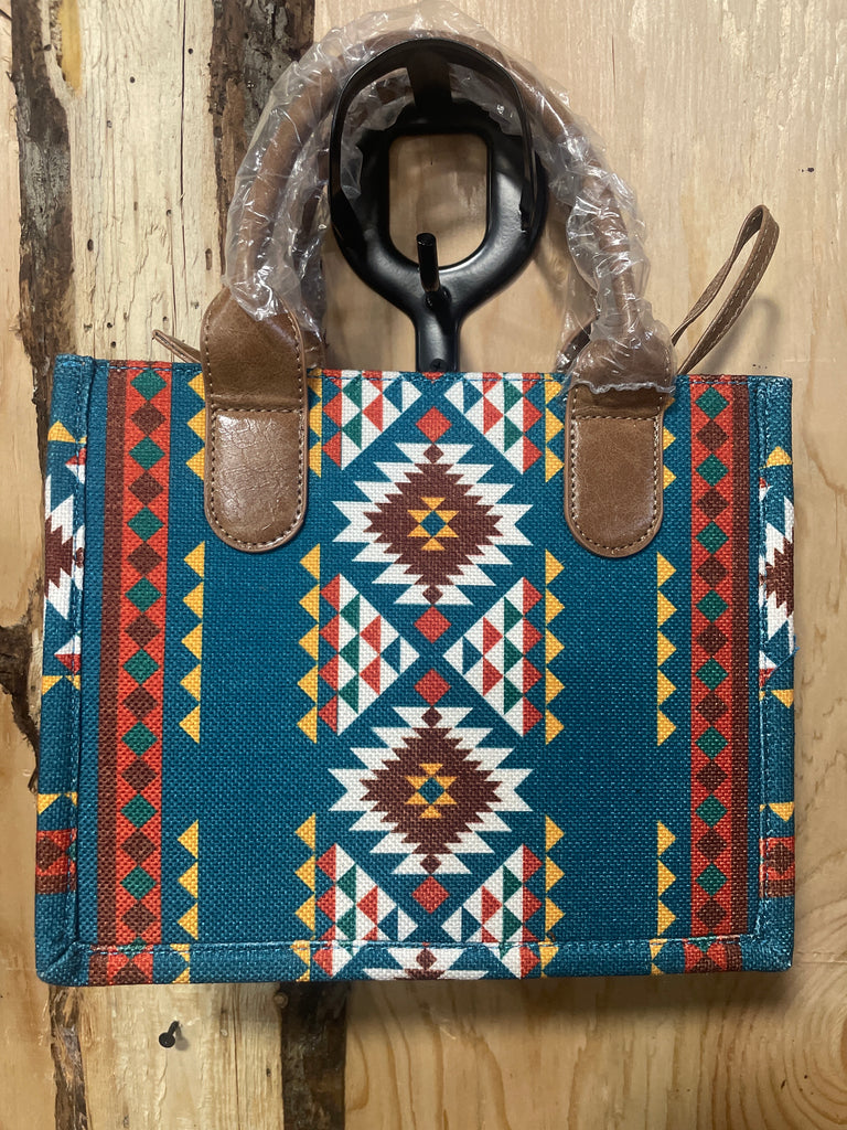 Teal Aztec Tasseled Purse