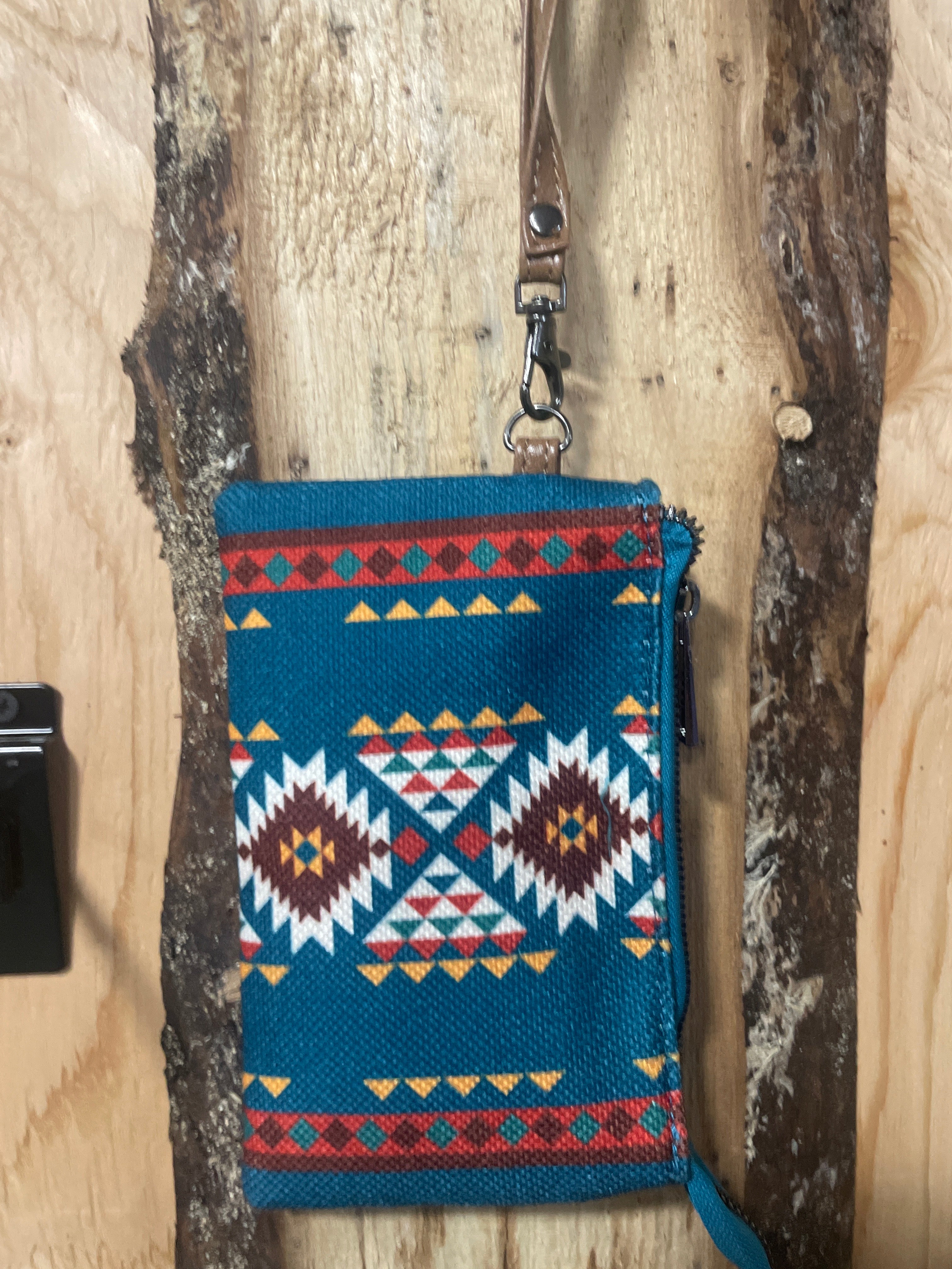 Teal Aztec Tasseled Purse with coin purse included.