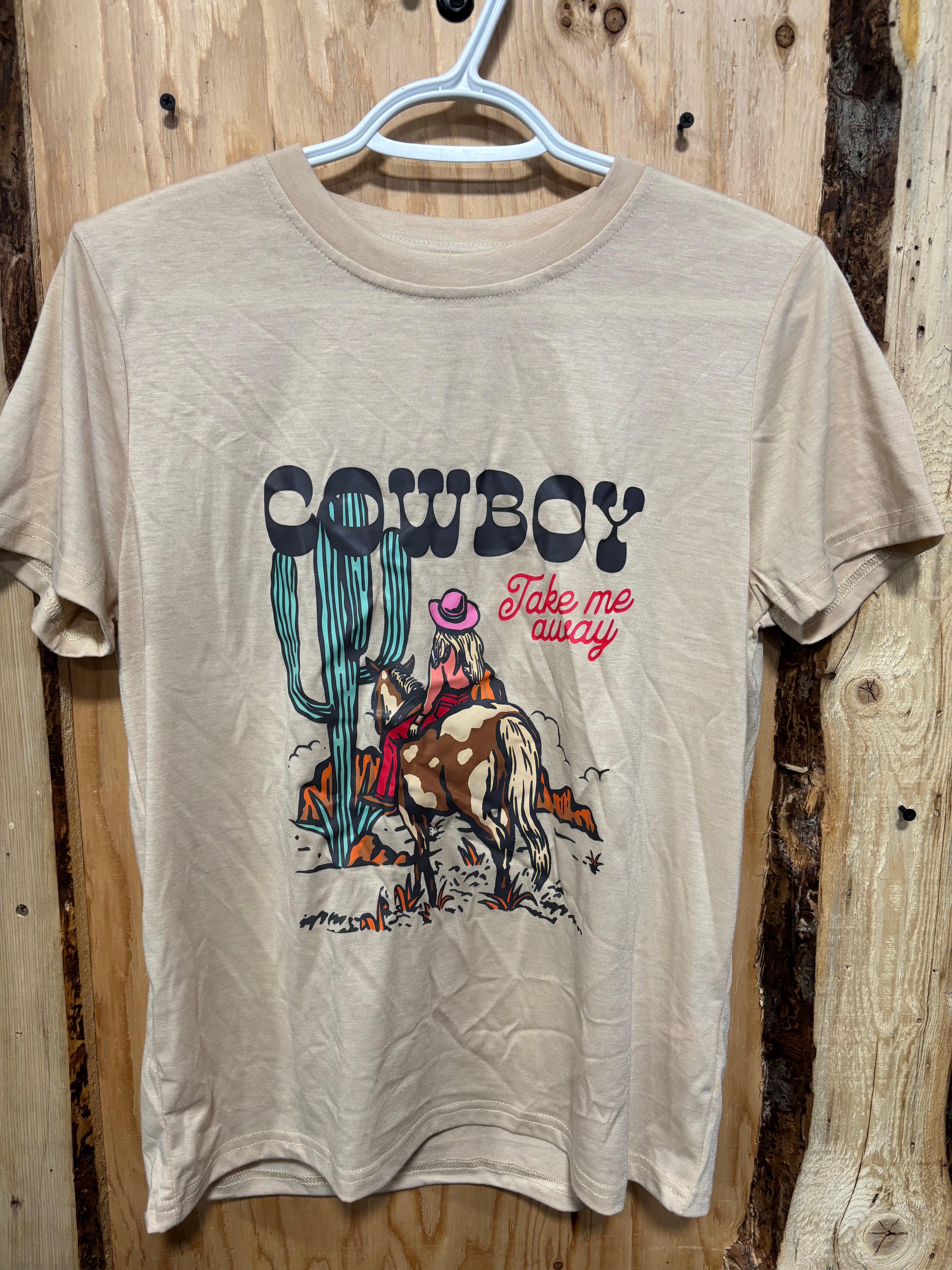 "Cowboy take me away" Tee - X-Small is backordered and will ship as soon as it is back in stock.
