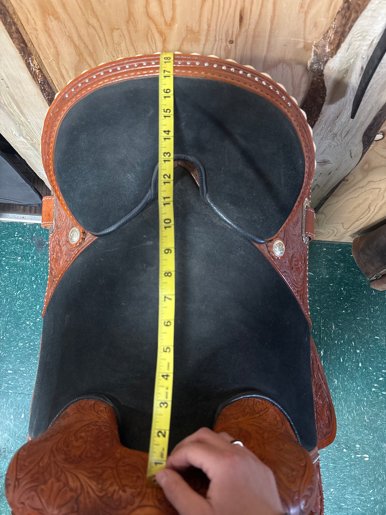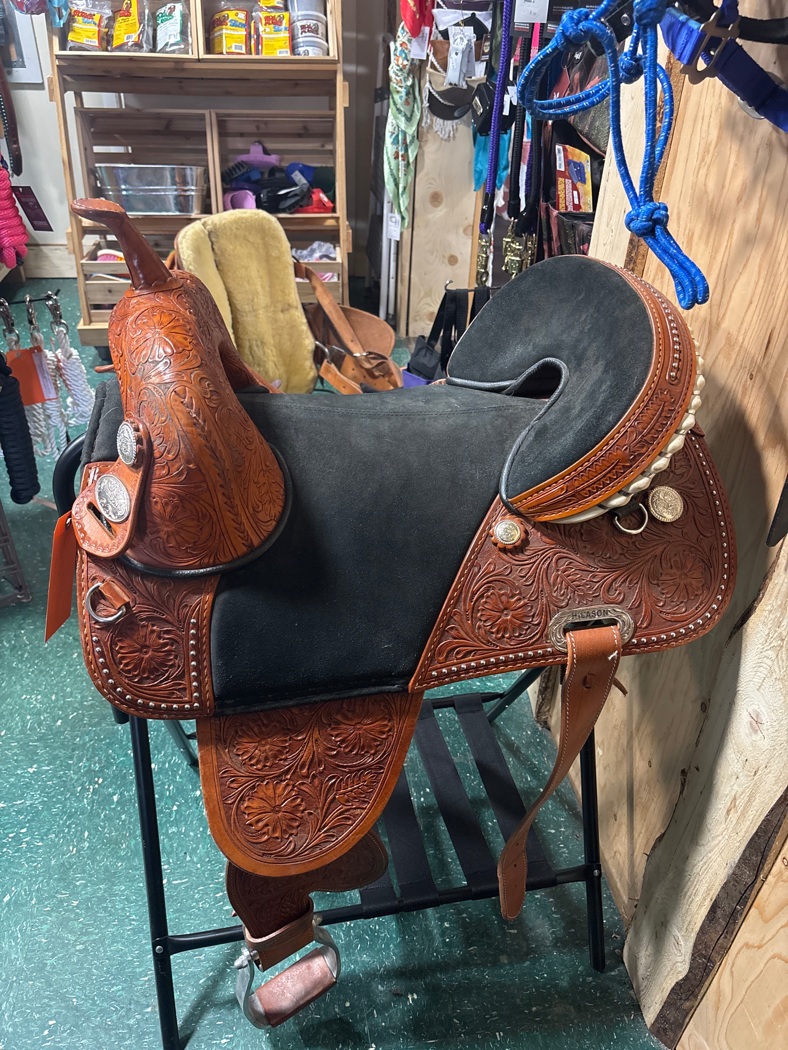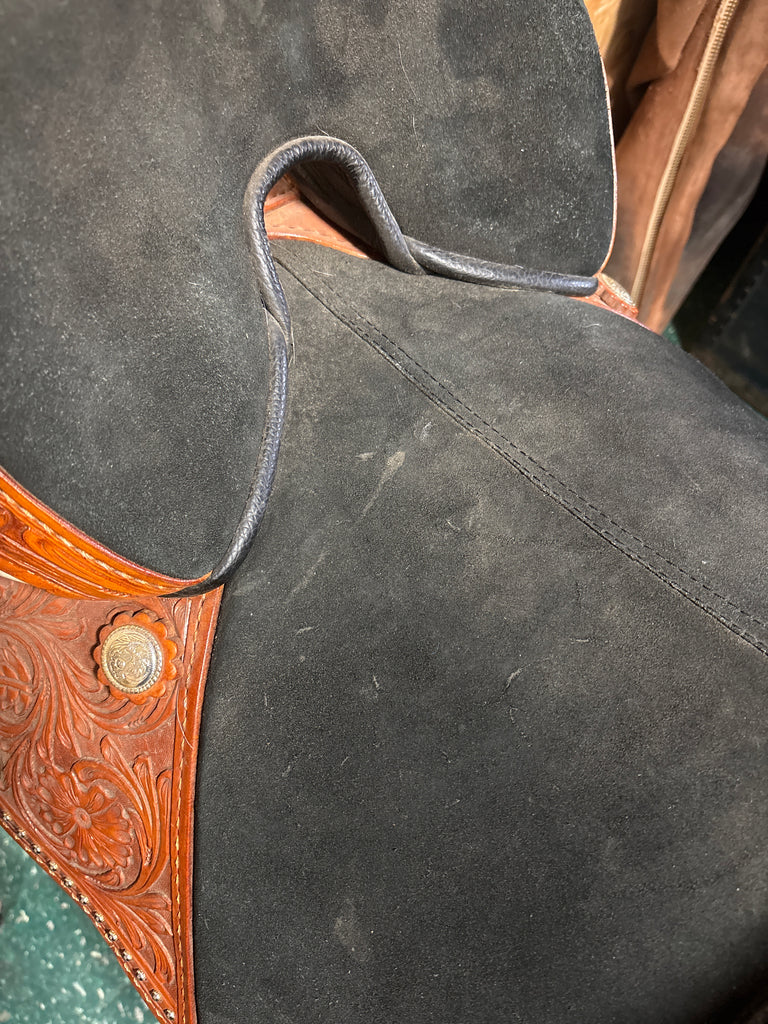 Excellent condition, has some dust from being in tack shed, some minor hair and wear. Has a nice deep seat.