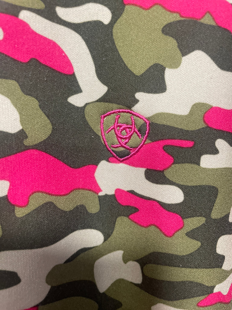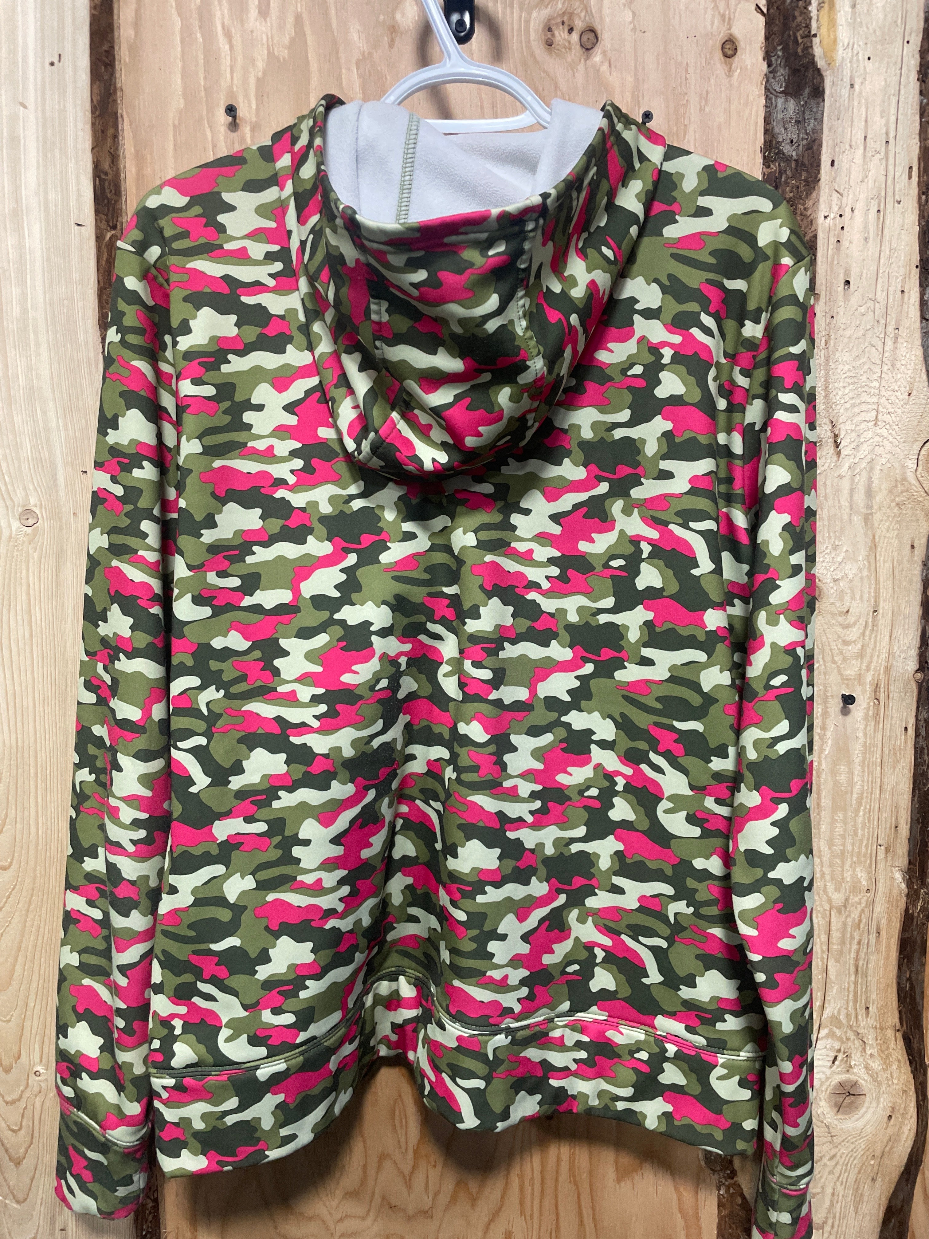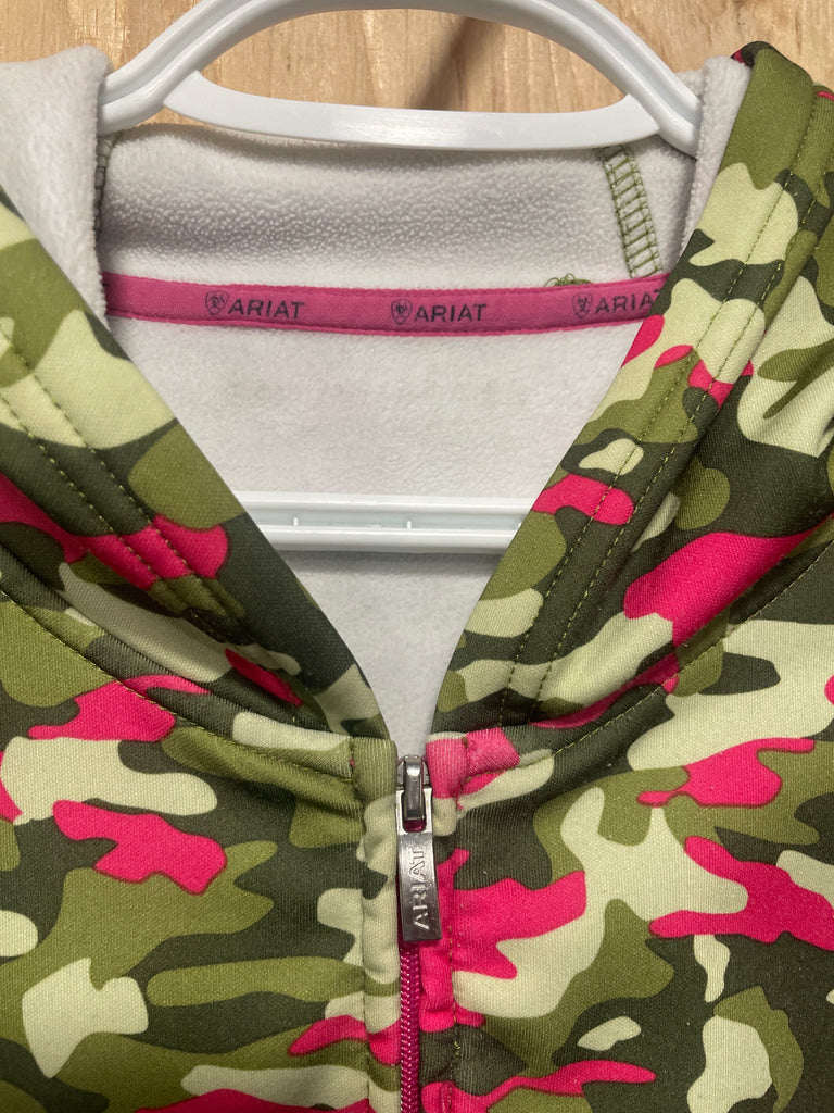 Good used condition Ariat Pink Camo Zip up Hoodie. Some piling on the pockets and faint Perfume smell but otherwise great condition.