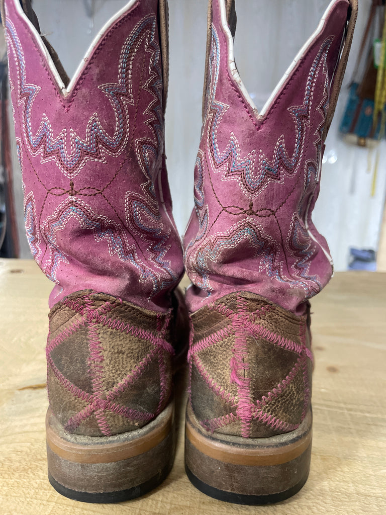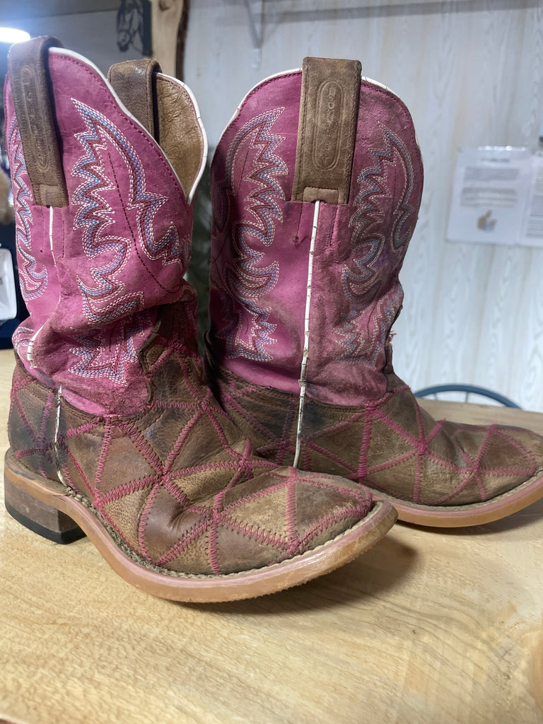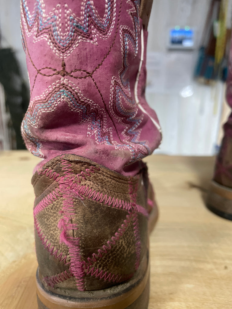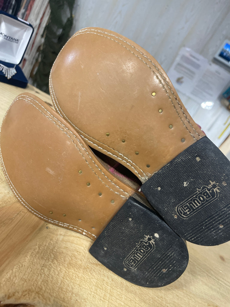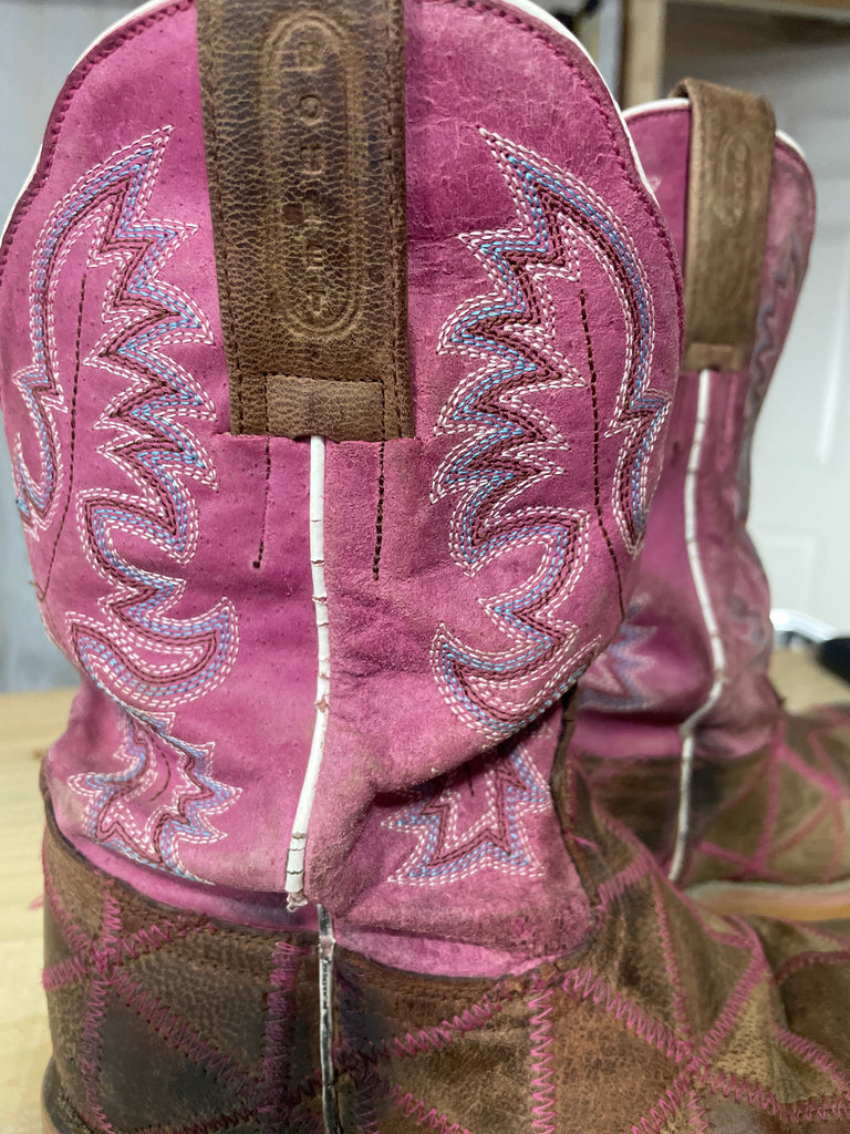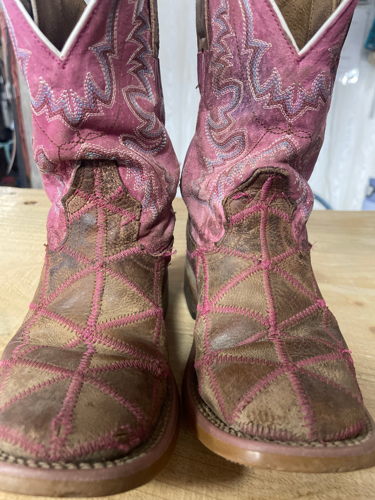well loved, has wear overall but still lots of life left, especially for a kid that is growing out of their boots quick! The bottom soles are in perfect condition, so most likely have been resoled.