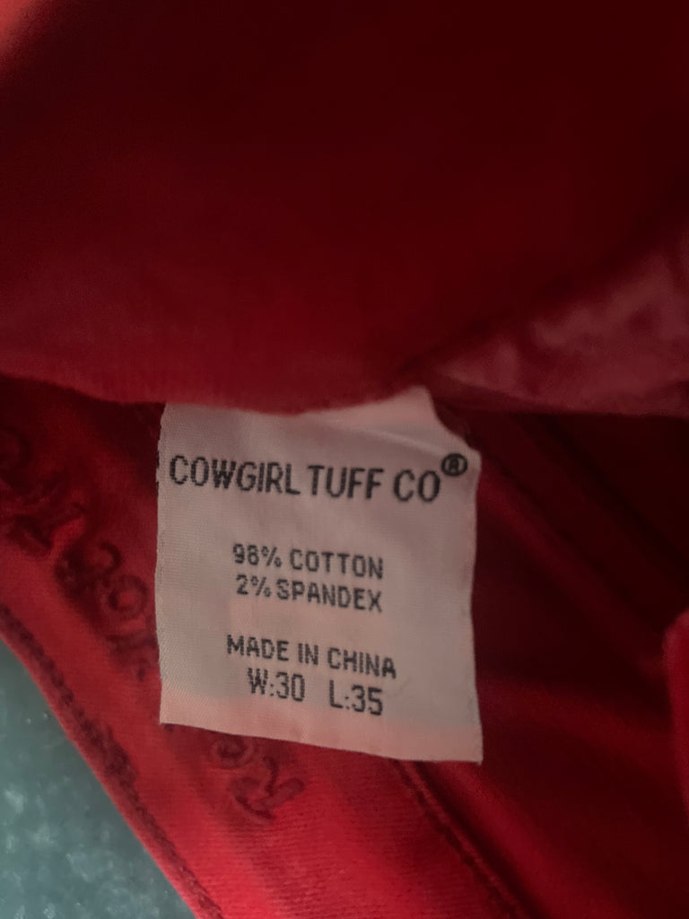 USED- Cowgirl Tuff Red Hot Trousers- 30x33 is backordered and will ship as soon as it is back in stock.